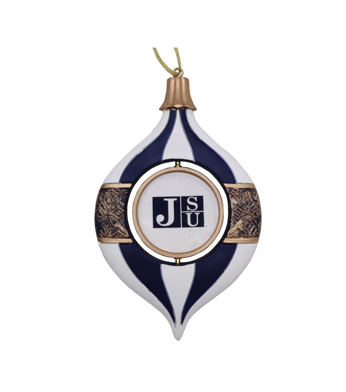 Show your team's logo and colors with this unique Spinning Bulb Ornament. These ornaments look great on a tree or hung anywhere. They also come in a plastic box to be stored year around. Make your sports season one to remember with this wonderfully handcrafted 5.5" Jackson State Spinning Bulb Ornament.