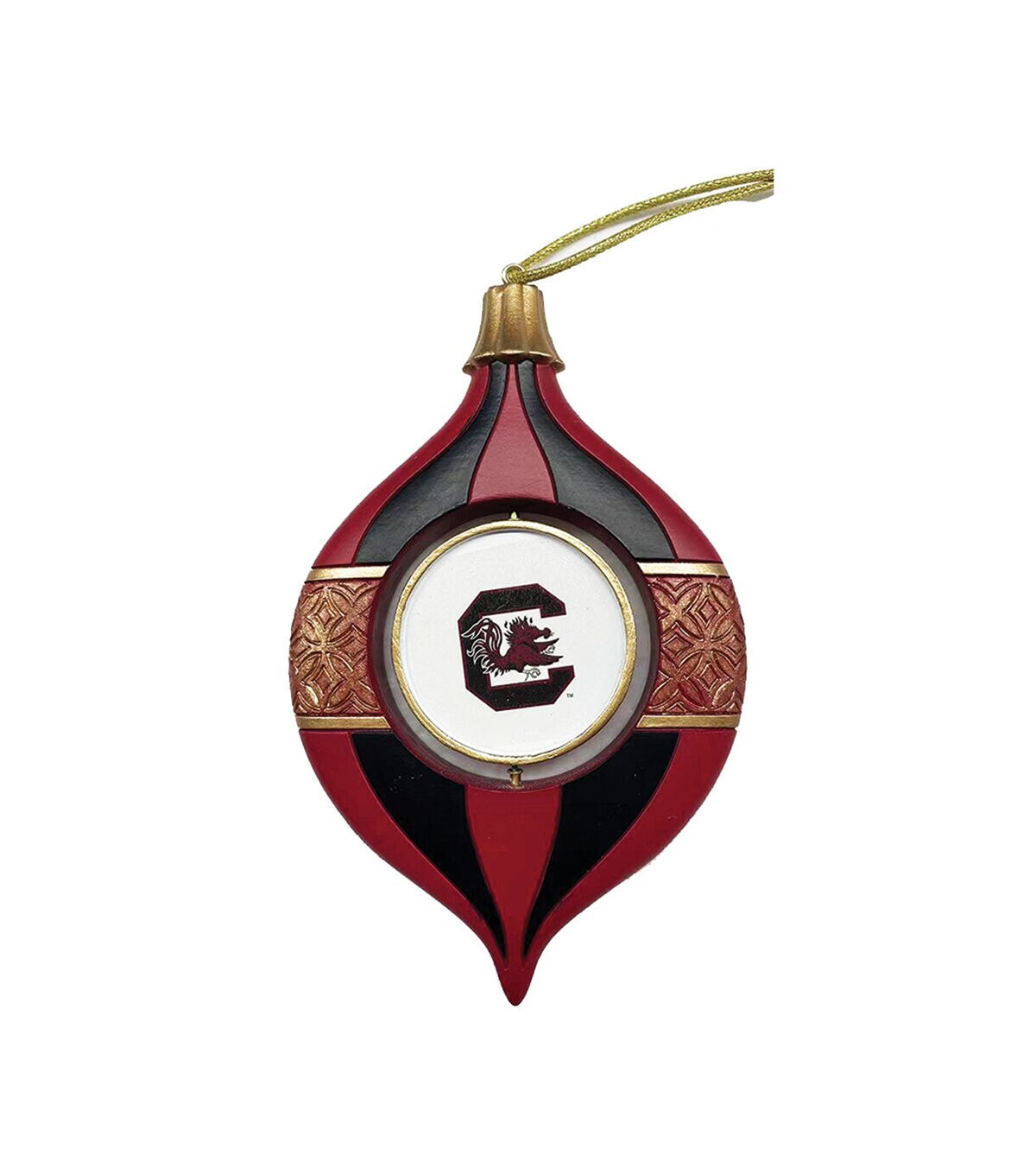 Show your team's logo and colors with this unique Spinning Bulb Ornament. These ornaments look great on a tree or hung anywhere. They also come in a plastic box to be stored year around. Make your sports season one to remember with this wonderfully handcrafted 5.5" South Carolina Spinning Bulb Ornament.