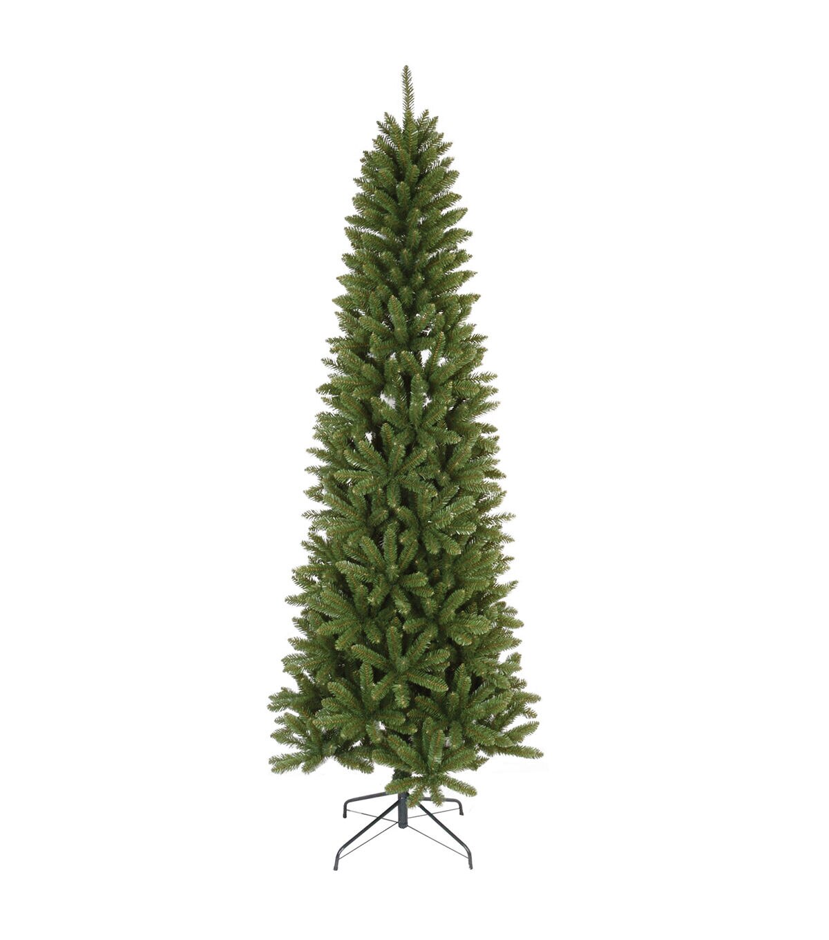 This tree will look good in any room. It stands 7.5' feet tall and is pencil slim. Decorate this tree any way you like. The stand is included and is for indoor use only.