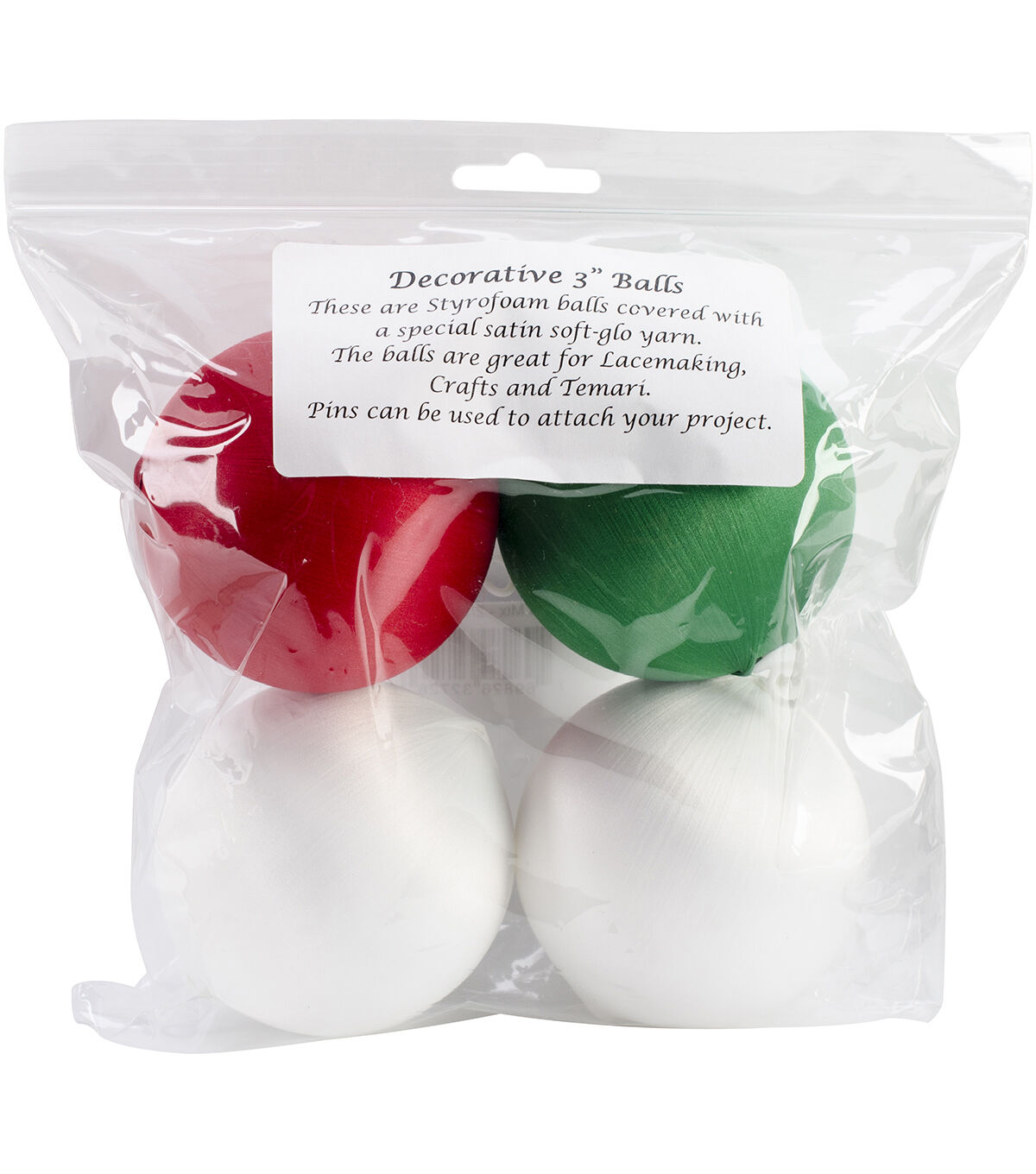 Handy Hands-Satin Balls. Perfect for tatting your own images to decorate your Christmas tree! This package contains four 3 inch round satin balls. Made in USA.