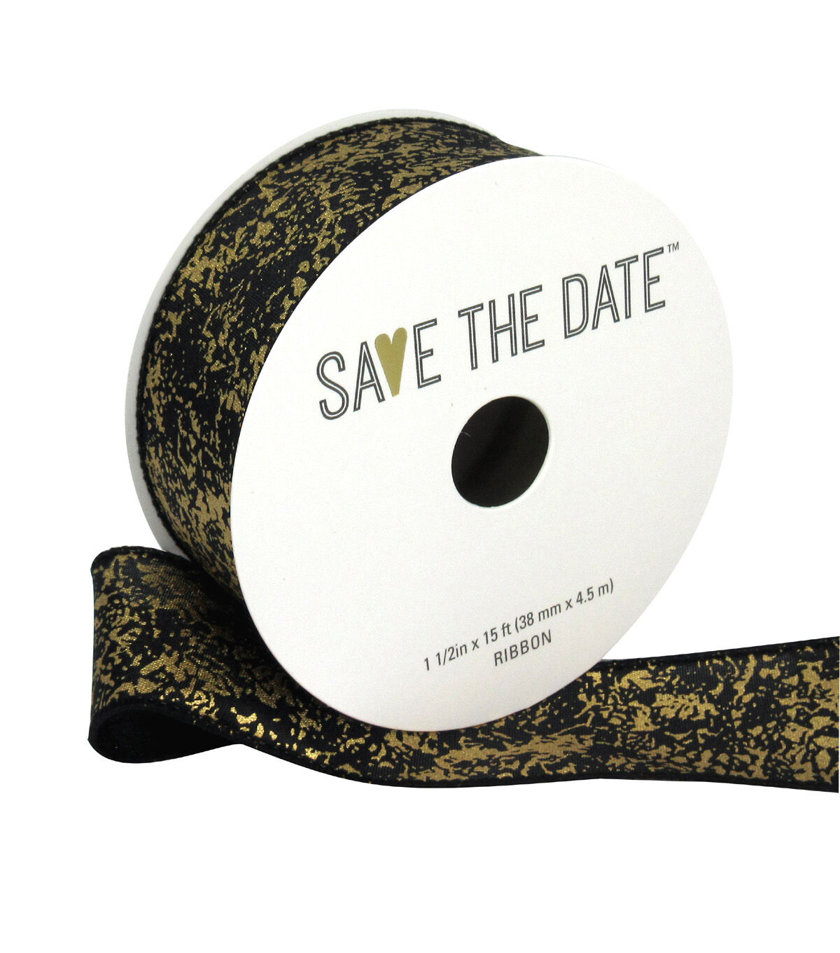Add a versatile embellishment to your wedding-themed invitation cards and favor boxes with the Save the Date Ribbon-Gold Marble on Black. It sports a suave and elegant gold marble pattern on a black background that lends a unique touch to your garlands, gifts and decor accents. You can also create a stunning wreath by teaming this ribbon with other decorative ribbons, sold separately.