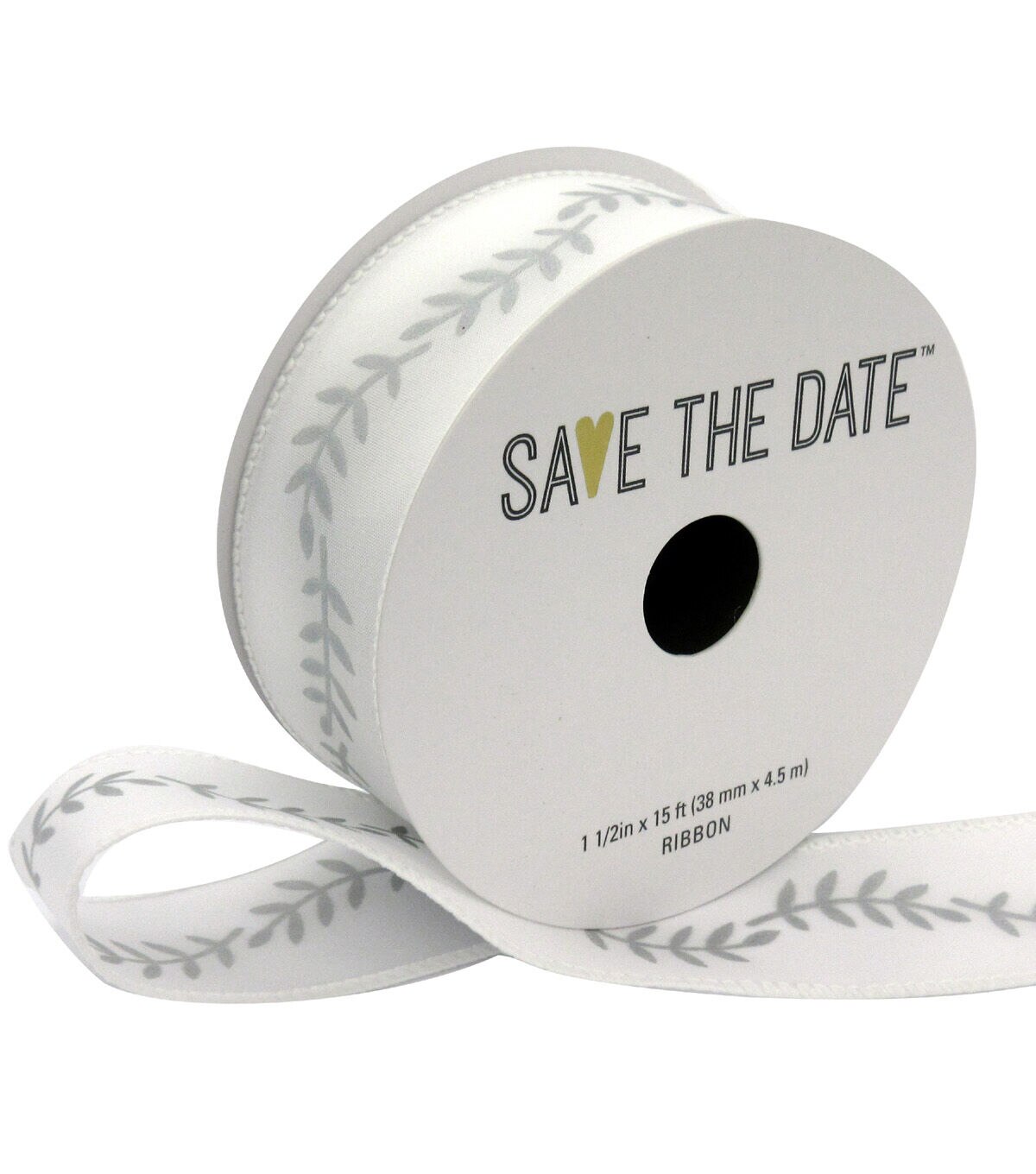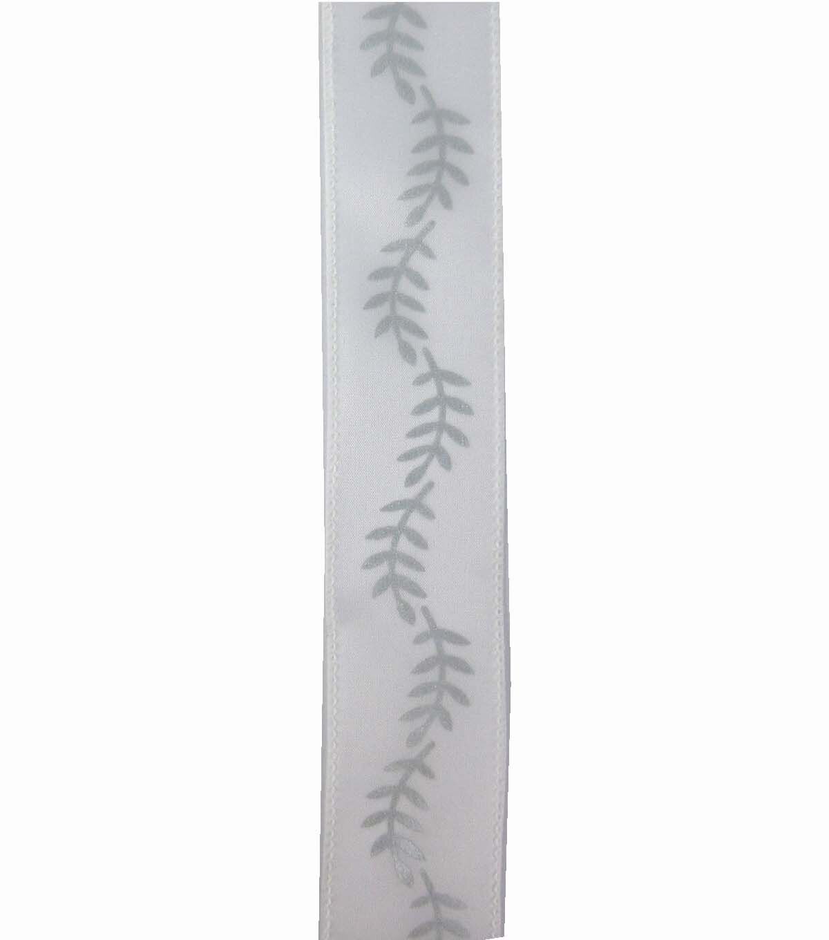 Glam up your wedding decor with this Save the Date Ribbon-Silver Ferns on White. It sports complementing silver ferns against a white background that will look delightful when shaped into beautiful bows and other designs. You can also team this decorative ribbon with a mesh ribbon, sold separately, to deck up your DIY wreath.
