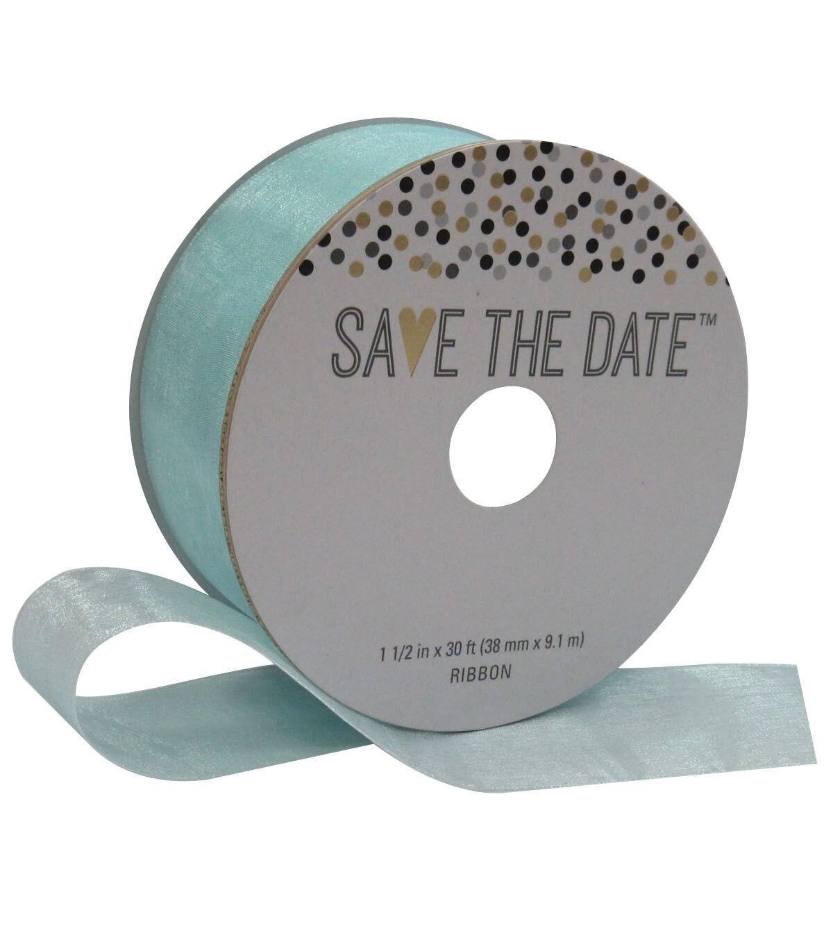 • Save the Date 1.5'' X 30' Ribbon Blue Sheer