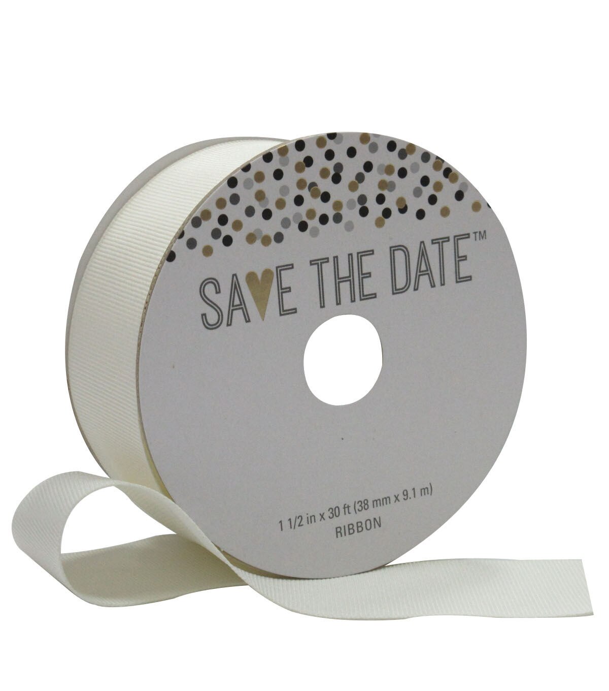 Save the Date 1.5'' X 30' Ribbon Ivory Grosgrain
