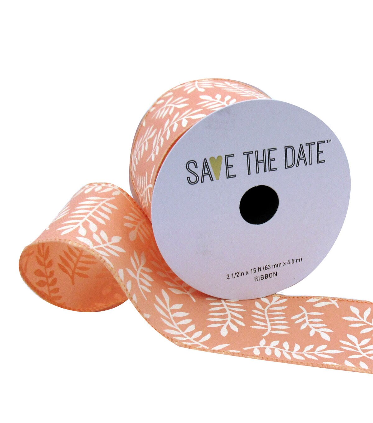 Take your wedding centerpiece to the next level with this Save the Date Ribbon-Ivory Ferns on Peach. It sports a suave peach-colored background that highlights ivory ferns. You can wrap this ribbon around candles, flower vases, wall hangings, gift baskets, and other decor accents, or use it in crafts and scrapbooking projects.
