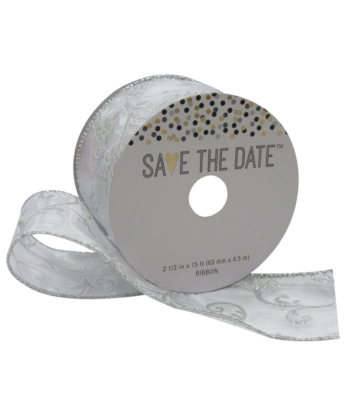 • Save the Date 2.5'' X 15' Ribbon Ivory Wired Sheer