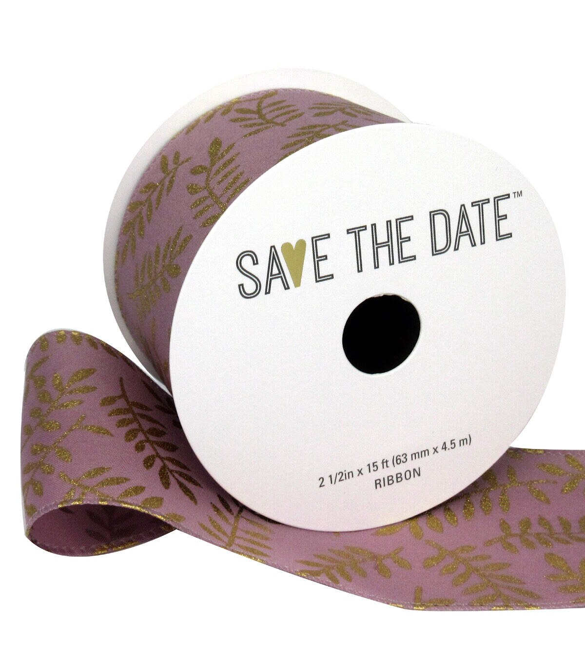 Complete the look of your decor accents by embellishing them with the Save the Date Ribbon-Gold Ferns on Mauve. Sporting chic-looking gold ferns on an elegant mauve background, this decorative ribbon is perfect to accentuate the look of table runners, flower vases, candles and more.