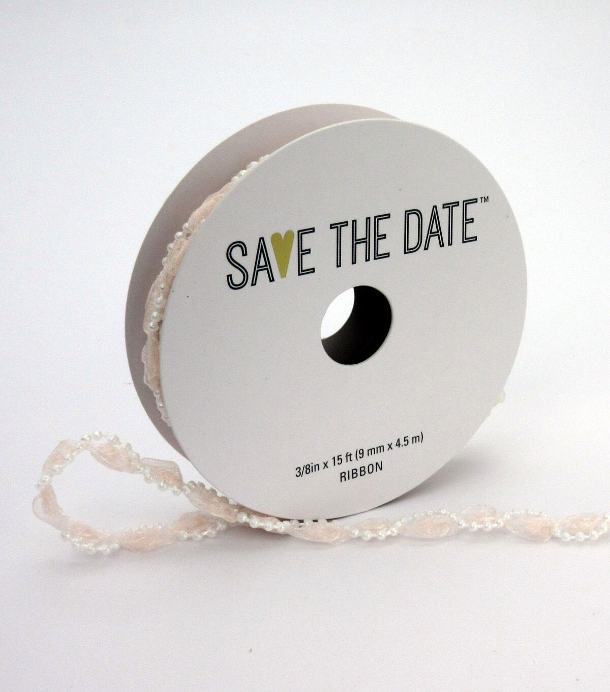 Save the Date 3/8" x 15' Blush Wrapped Pearl Ribbon