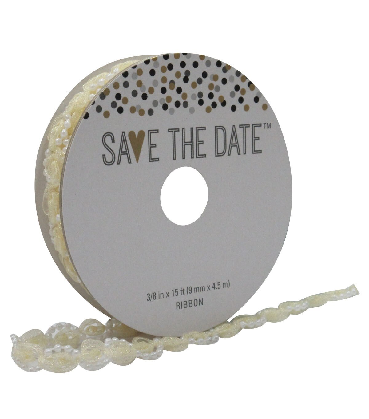 Save the Date 3/8" x 15' Wrapped Pearl Ivory Ribbon