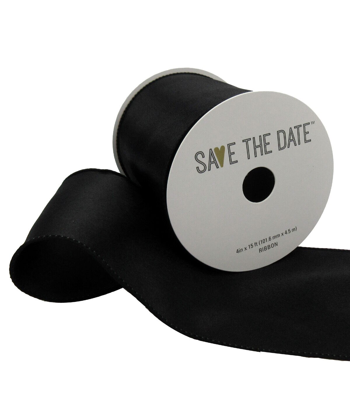 Jazz up your crafts and decor projects with the Save the Date Satin Ribbon-Black. This satin ribbon carries a charming shade for visual flair. You can use your imagination to cut, twist, curl and tie it into beautiful bows and accents for all your creative projects.