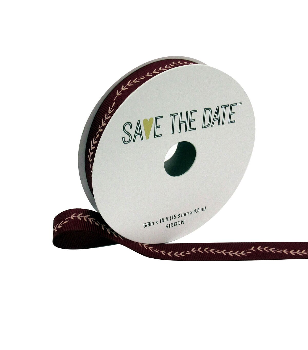 Cover a simple vase with this Save the Date Ribbon-Blush Ferns on Cranberry to create an elegant centerpiece. This decorative ribbon sports a simple cranberry shade accentuated with ferns in blush for added charm. Use it as is, or team it with other coordinating ribbons to embellish a centerpiece or a DIY wreath.