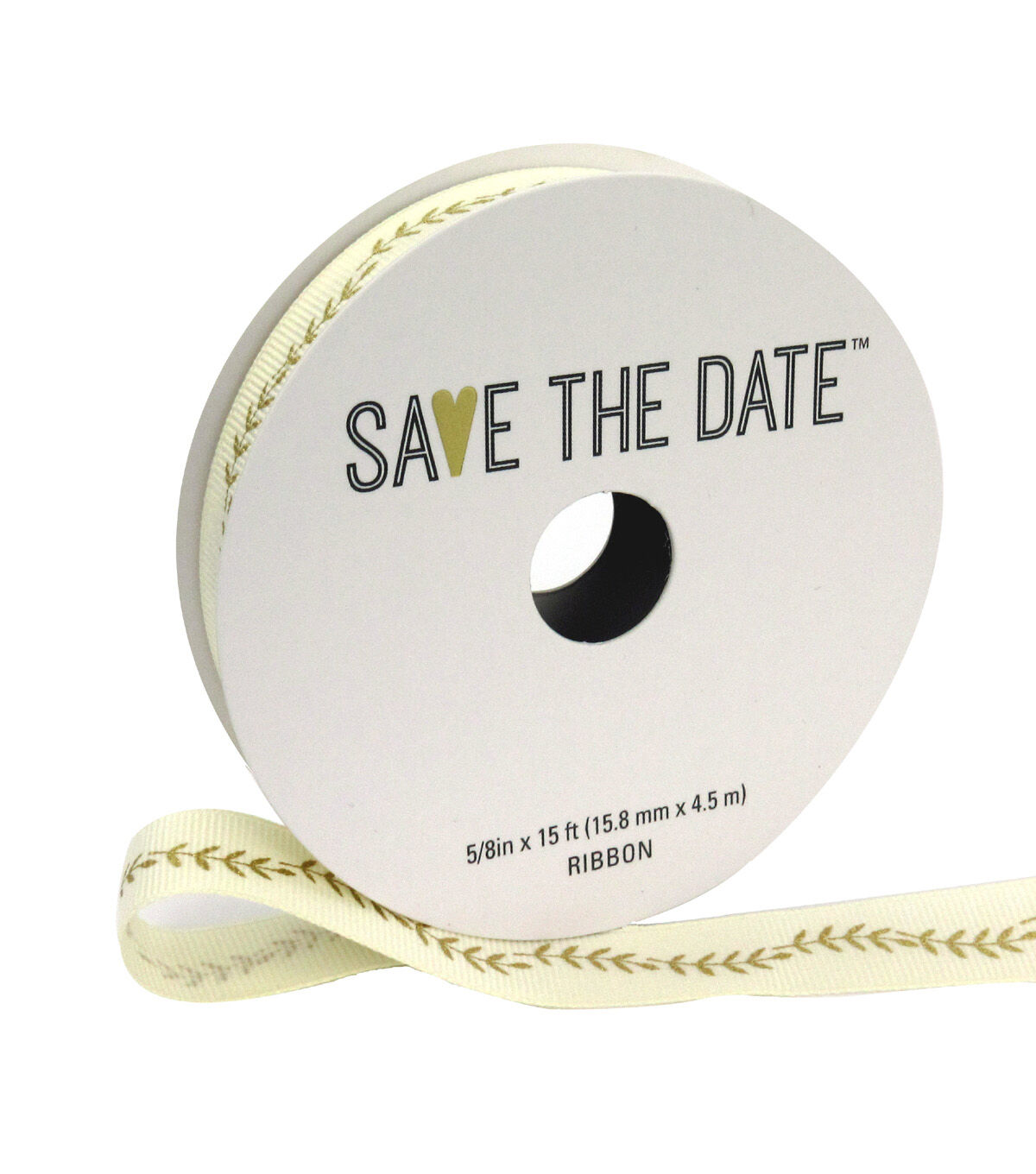 Add interest to seasonal floral arrangements, craft projects and DIY decor with the Save the Date Ribbon-Gold Ferns on Ivory. Team this decorative ribbon with other colorful ribbons, sold separately, to lend instant charm to a DIY wreath. Gold ferns against an ivory background will instill elegance into any decor.