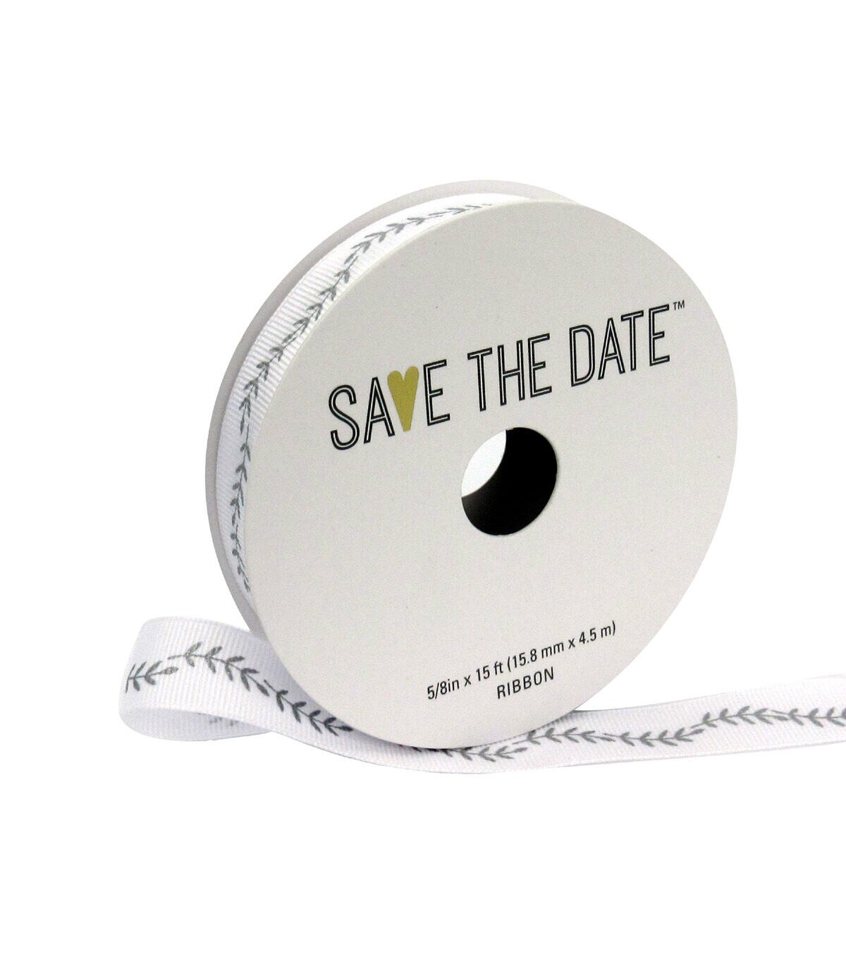 Glam up your wedding decor with this Save the Date Ribbon-Silver Ferns on White. It sports complementing silver ferns against a white background that will look delightful when shaped into beautiful bows and other designs. You can also team this decorative ribbon with a mesh ribbon, sold separately, to deck up your DIY wreath.
