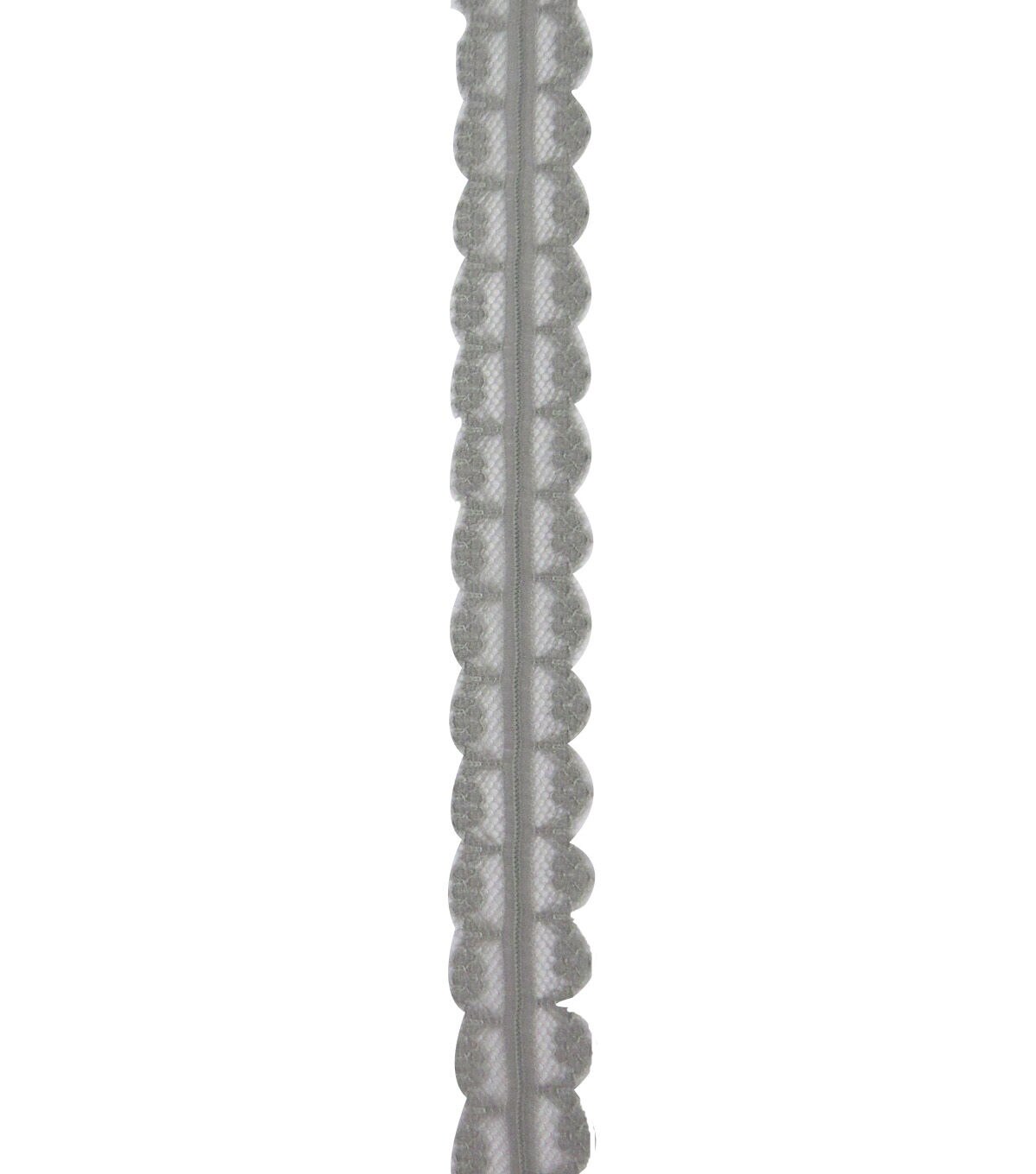 Fill your home with wedding vibes by crafting accents using the Save the Date Lace Ribbon-Light Gray. This decorative lace ribbon sports an elegant floral pattern in light gray for visual flair. It is perfect for trimming table runners, cushion covers and more for your wedding-themed decor.