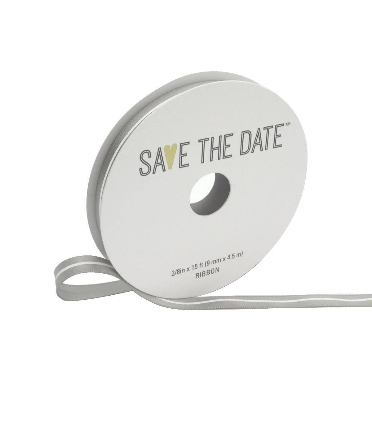 Use the Save The Date Ribbon-Light Gray White Stripe as a versatile embellishment in your wedding-themed favor boxes and invitation cards. It comes with a glittery finish and is perfect for adding a unique touch to your garlands, gifts and decor accents for a pre-wedding party. You can also create a stunning wreath by teaming this ribbon with contrast-colored ribbons, sold separately.
