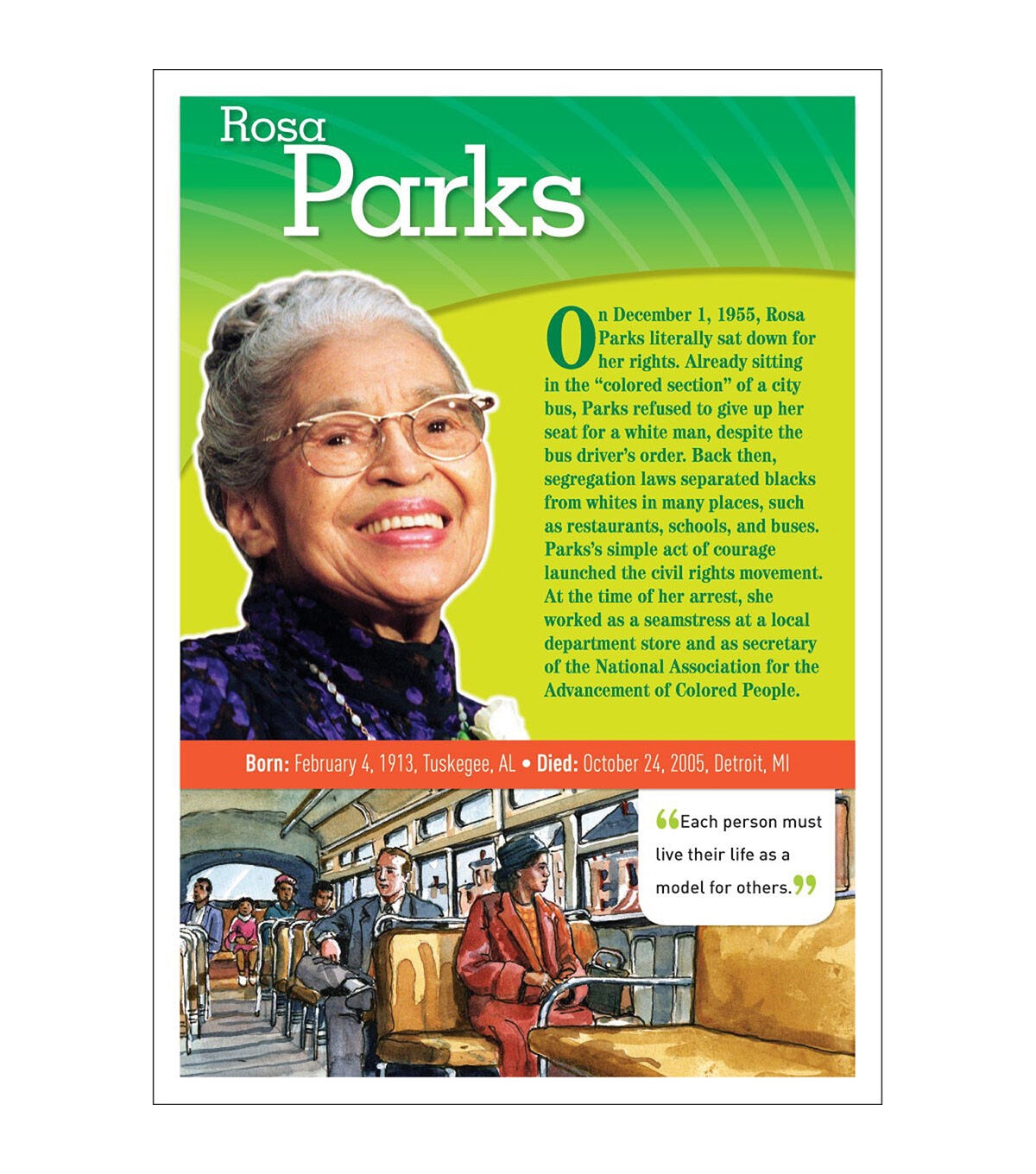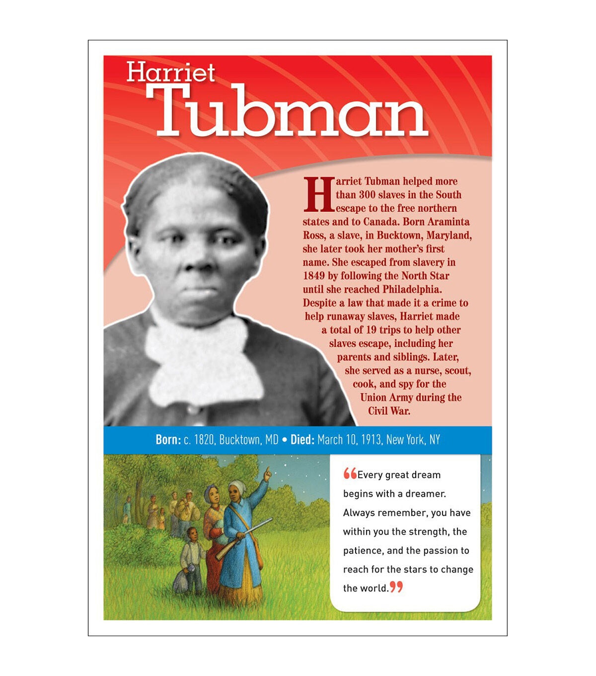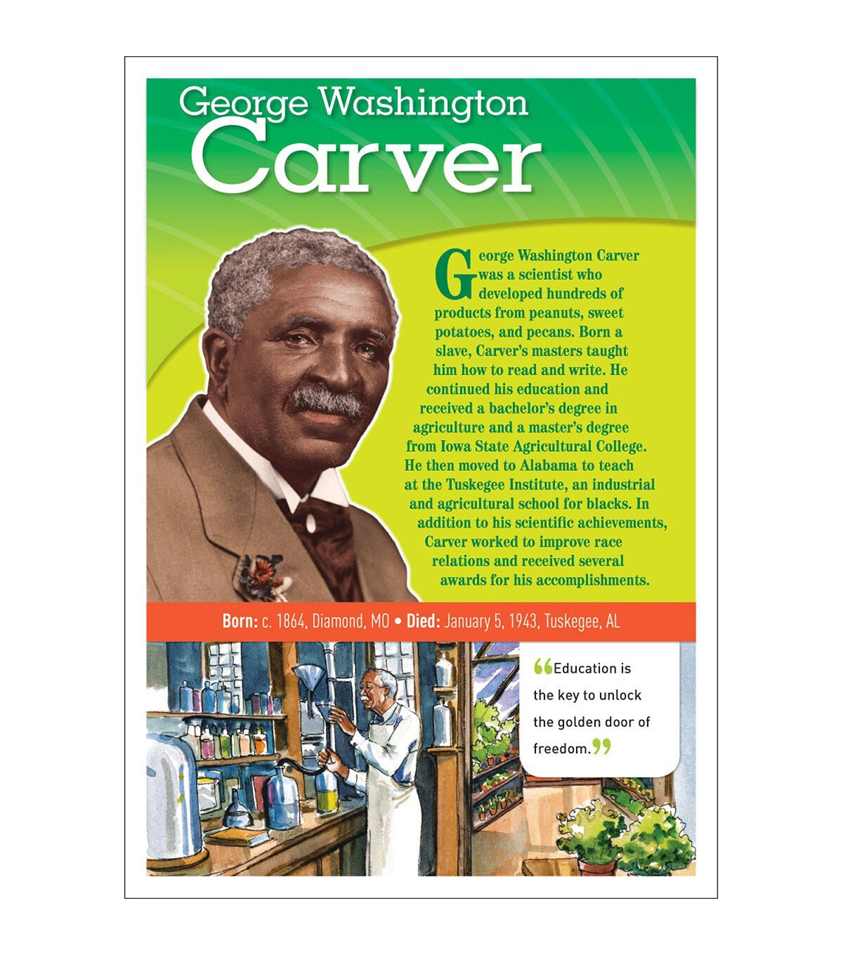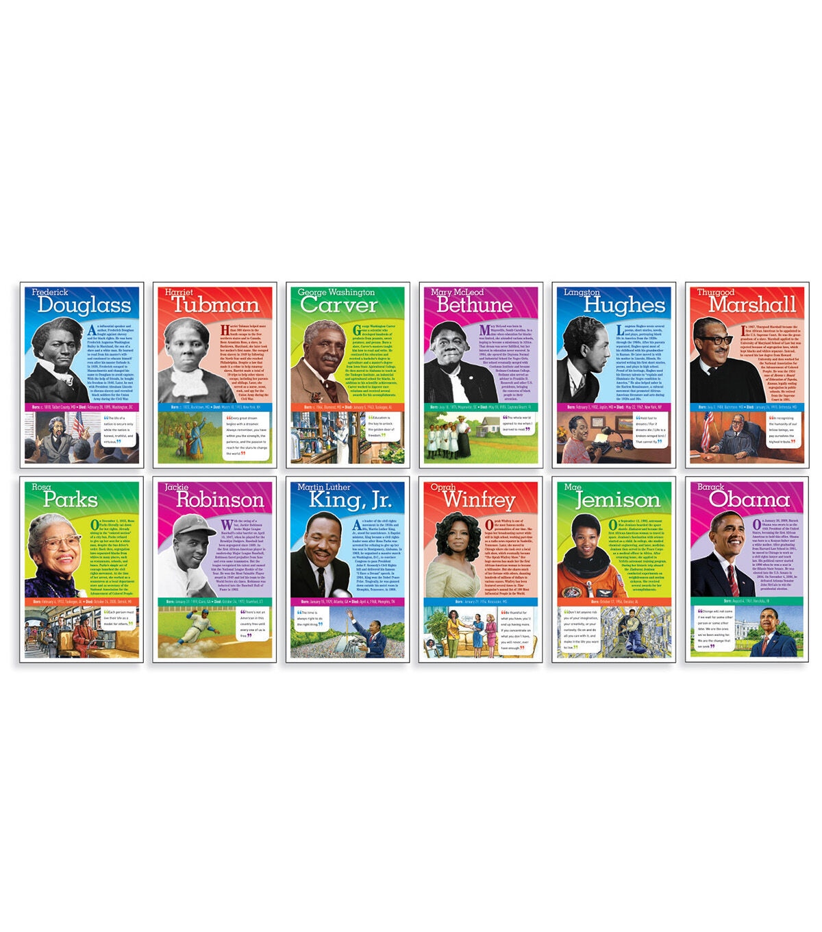 Celebrate the achievements of these 12 notable African Americans who changed history and paved the way to our diverse yet more unified nation. Each mini-poster includes a large photograph, a full-color illustration, a brief biography, and a quotation from each person. Also includes an activity guide. 12 mini-posters plus an activity guide