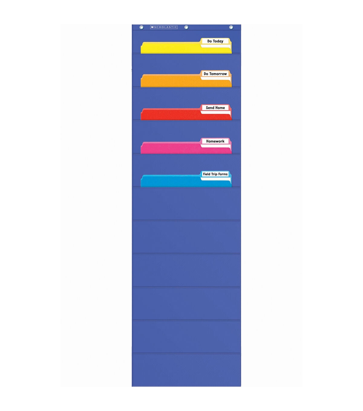 The Scholastic File Organizer Pocket Chart will make a great addition to classrooms and help teachers stay organized. It is perfect for organizing student files, file-folder games, forms and other paperwork. This pocket chart is made from nylon and features 10 sturdy pockets that fit letter-size folders.