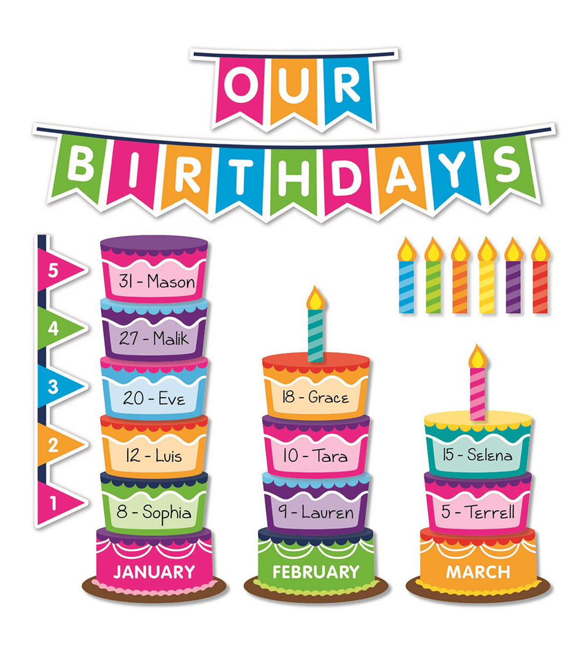Celebrate student birthdays and teach basic math and graphing concepts with this delightful confection of a bulletin board. Each child adds his or her birthday to the cake graph to create a mouth-watering classroom display.