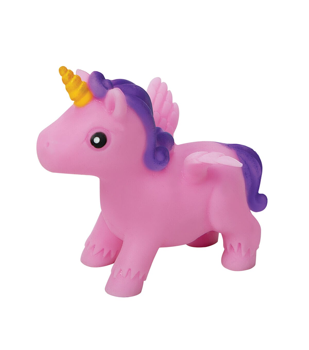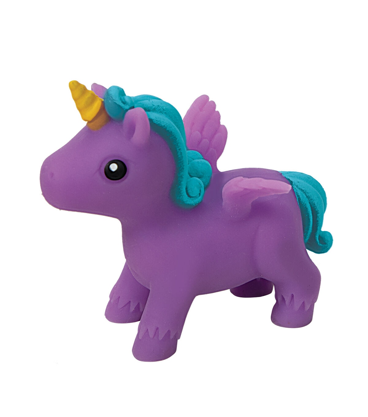 These full pocket sized unicorns are the perfect companion to take along. Whether in your pcoket, in your purse or lunchbox, they will come along for the ride. Assorted in teal, purple and pink, each unicorn has magical wings and a gold horn.