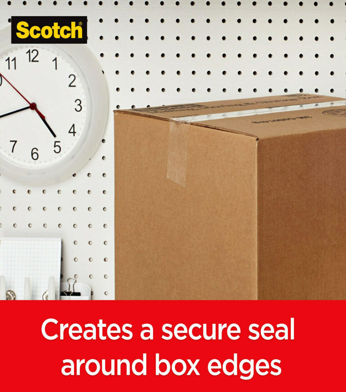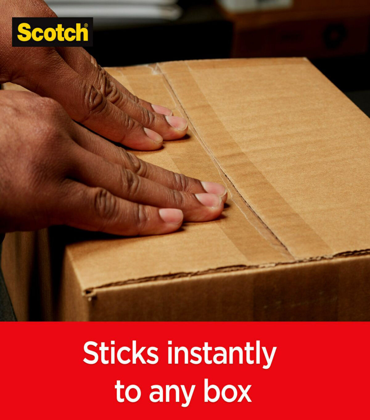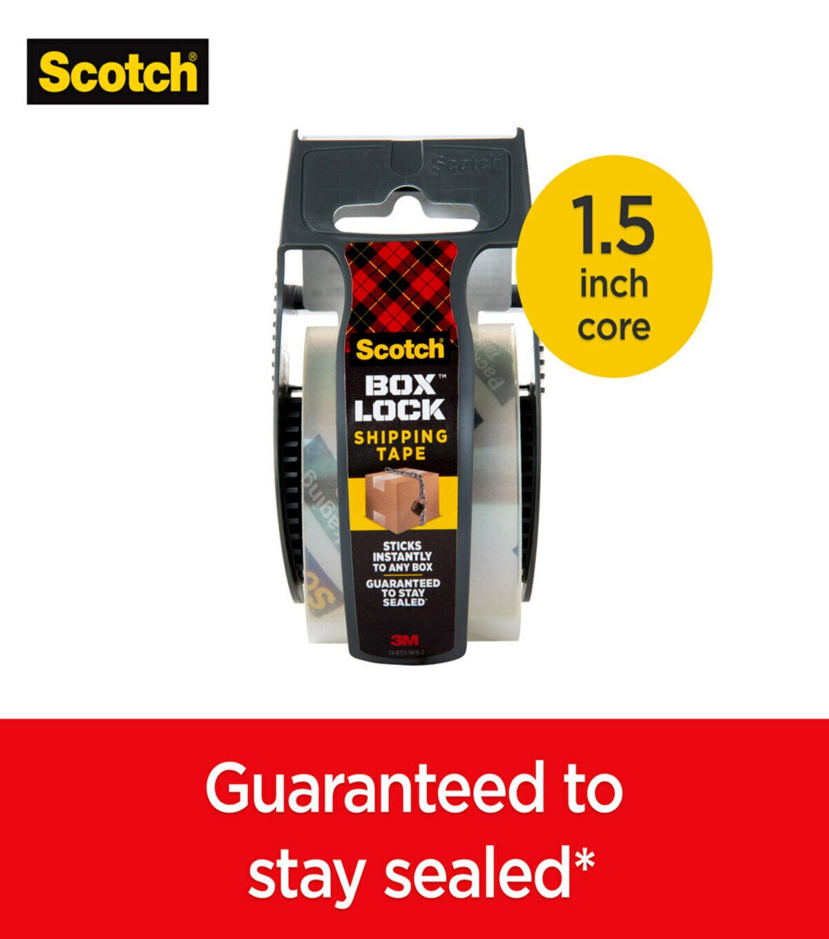Scotch Box Lock Packaging Tape sticks instantly to any box! It has the power of extreme grip to ensure boxes stay securely sealed, even during rough handling. Its new advanced adhesive creates a secure seal over box edges, and its thickness and durability reduces splitting and tearing and makes it easier to find the start of the roll. This tape can be used to seal any type of box, including harder-to-stick to 100% recycled boxes.