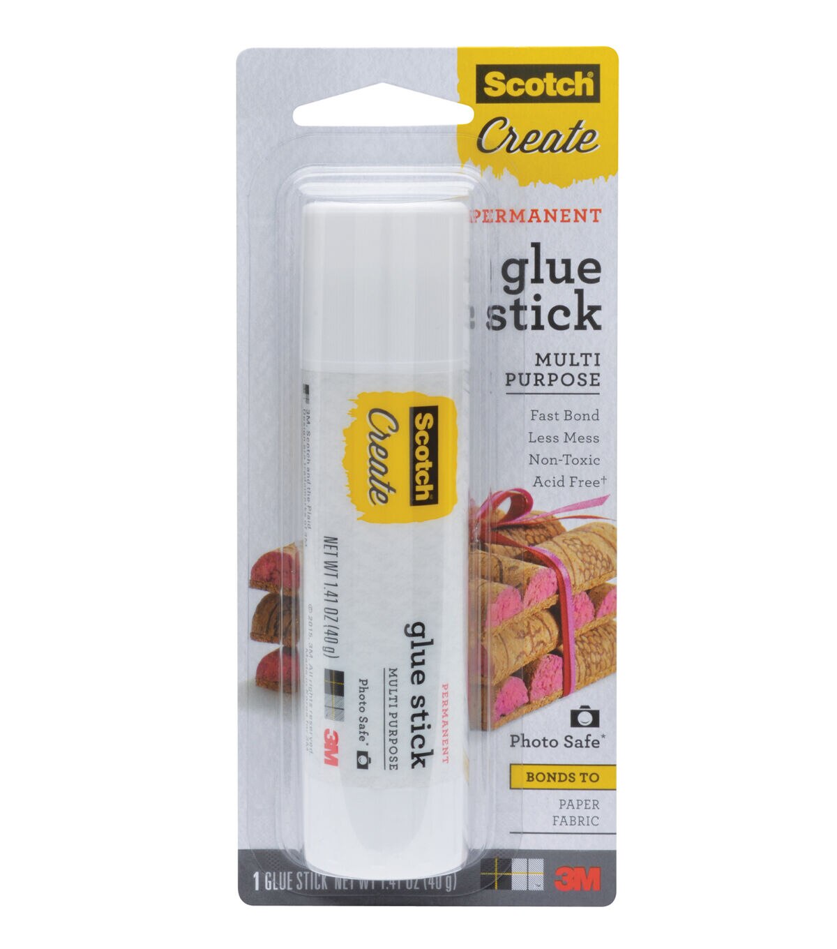 This acid free adhesive is great for photos, fabric and paper. It is non-toxic, washable and safe enough for kids. Plus it bonds quickly, dries clear and wrinkle free.