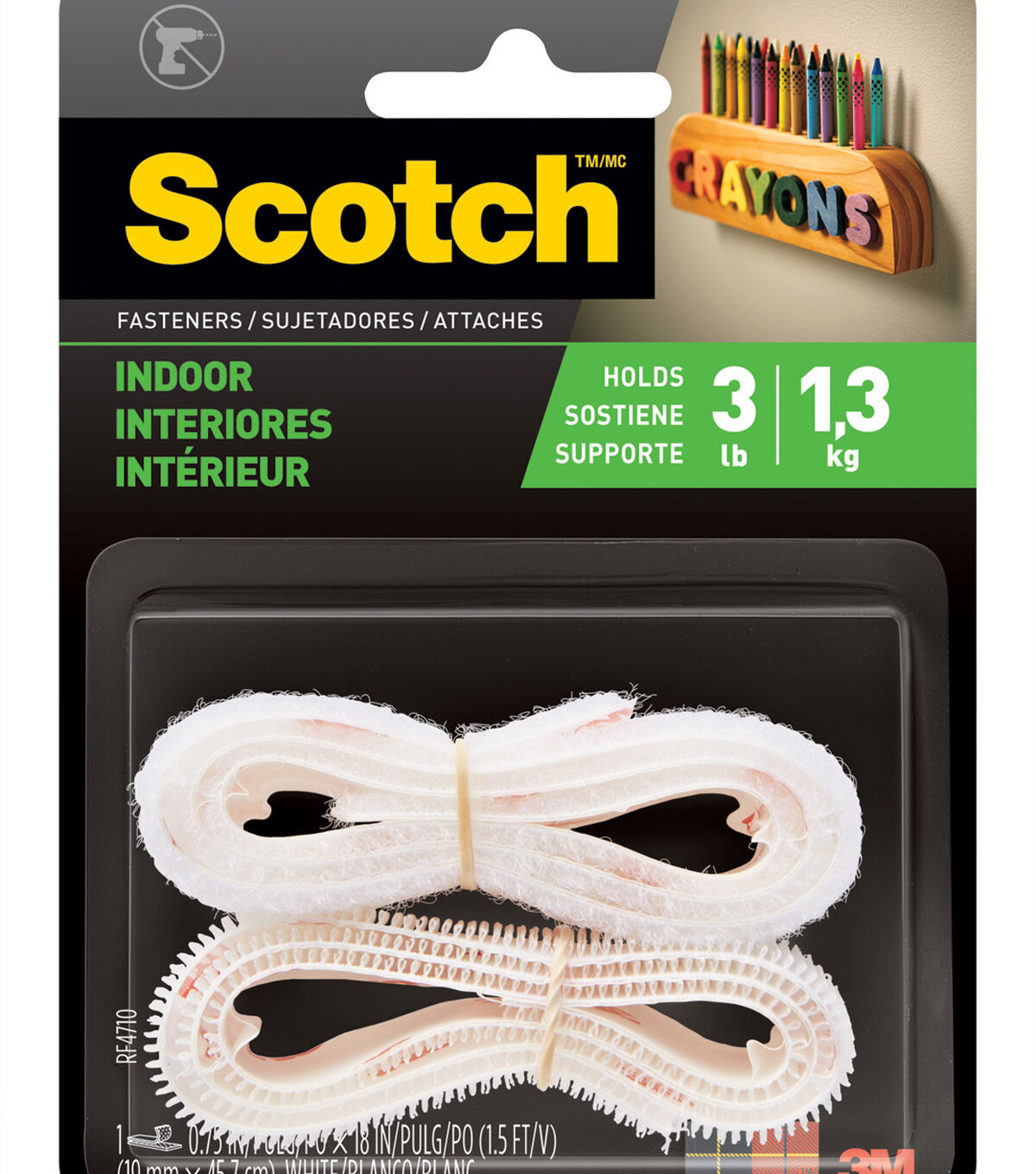 The Scotch Indoor Fasteners-White are the alternative closure to zippers, snaps and hooks, bonding securely to bare or painted metal, many plastics, wood and glass. These general purpose fasteners provide a convenient way to mount objects in your home, office or car.