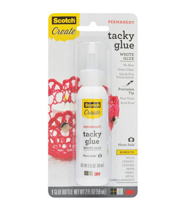 3M-Scotch Quick Dry Adhesive. This adhesive bonds to wood, fabric, leather, ceramic, paper, metal and embellishments. It is quick drying and has a fine tip for precision application. This package contains one 2oz tube of quick-dry adhesive. Non-toxic. Acid free. Photo safe. Conforms to ASTM D4236. Made in USA.