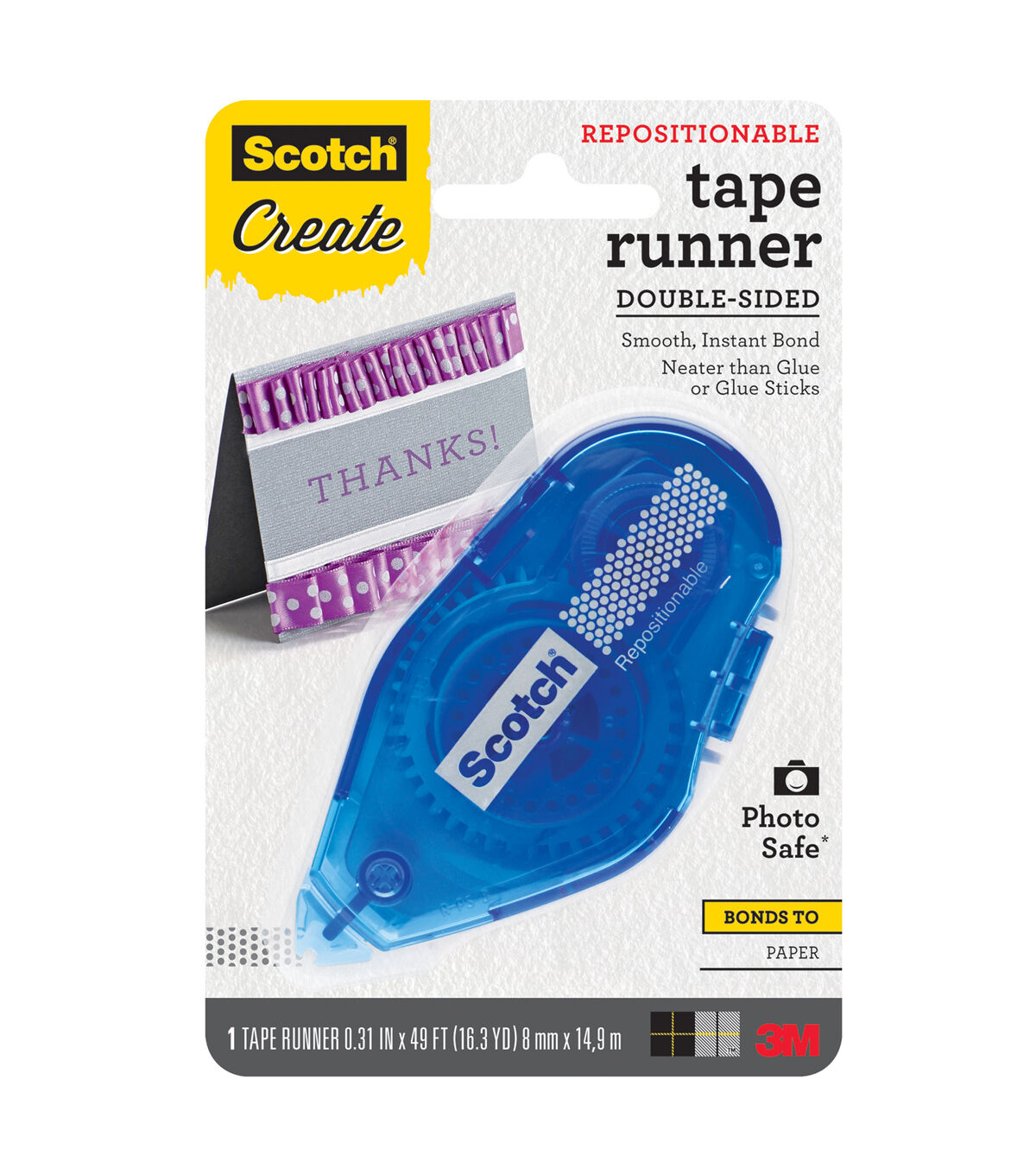 Repositionable adhesive dot roller for paper applications. Double-sided segmented dots are perfect for many applications allowing working time before setting your item in place. Photo safe.