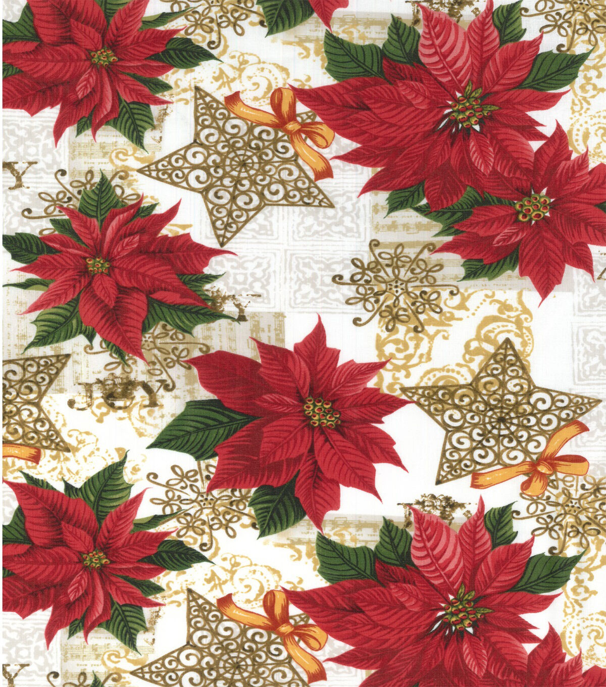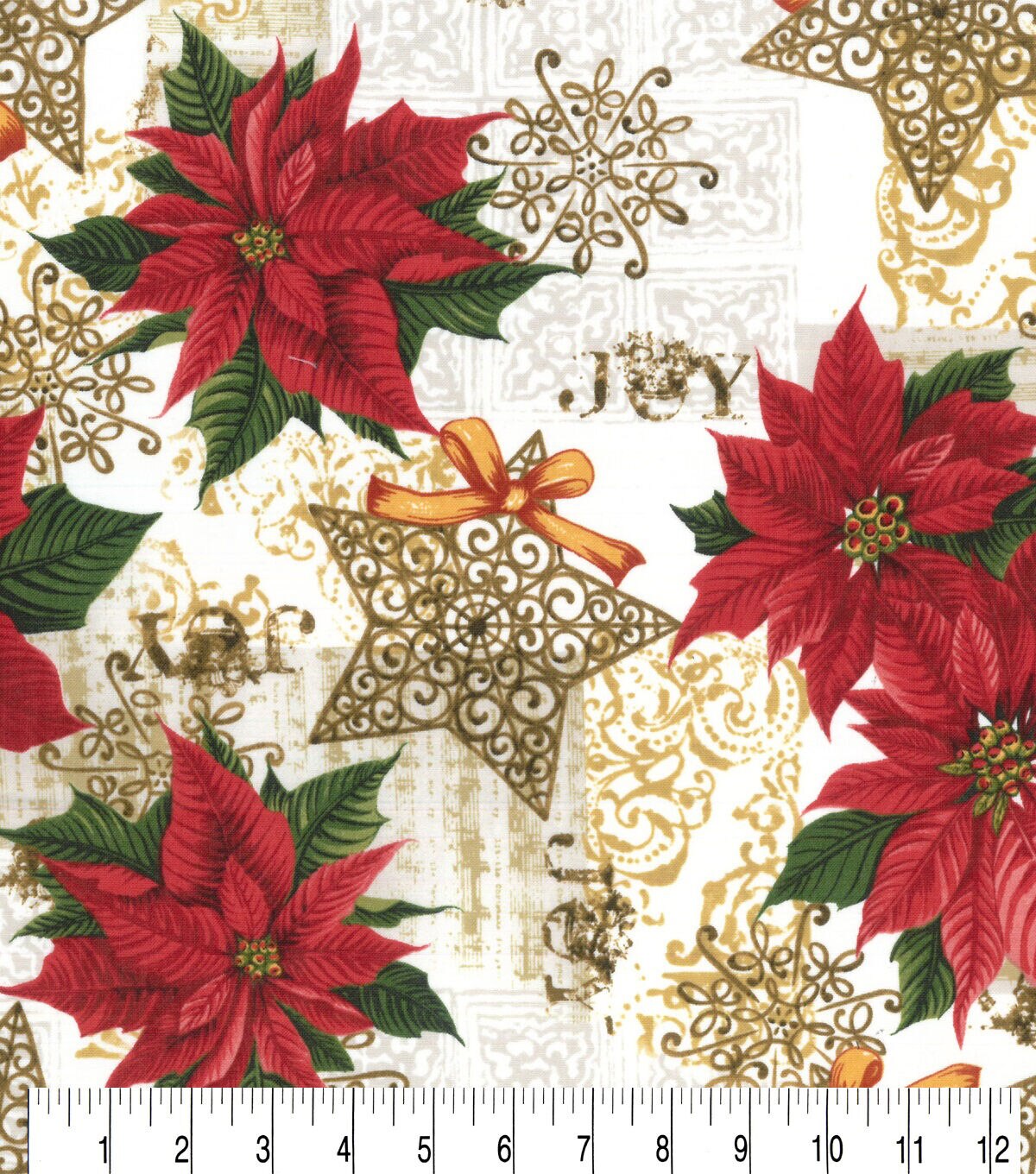 Scroll Star & Poinsettia Christmas Cotton Fabric