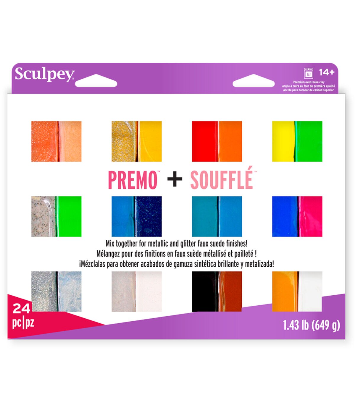 This multi-pack combines two of the most popular clay brands together - Premo metallics and glitters and a versatile range of colors from Soufflé! Mix these two brands of clay together to create beautiful jewelry, home décor and mixed media projects!