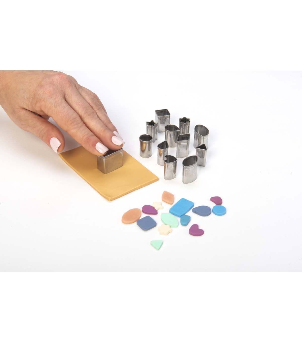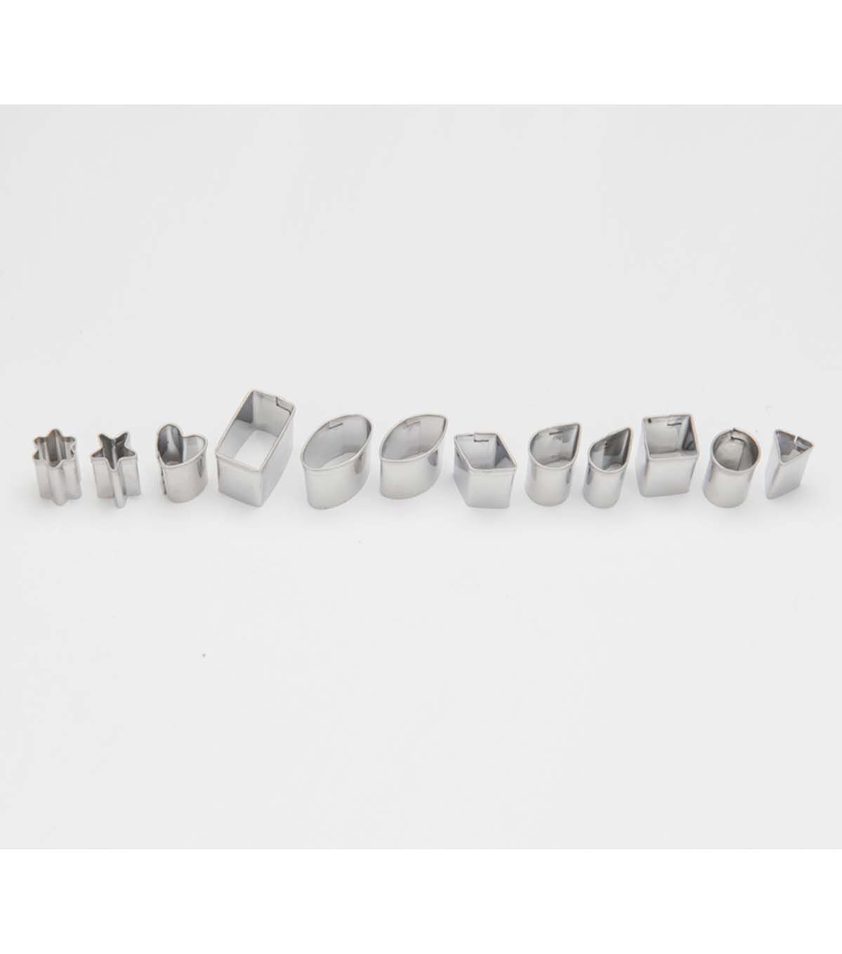 POLYFORM-Premo Mini Metal Cutters. Create fashionable, contemporary jewelry pieces while learning basic clay techniques. It's easy to make customized jewelry. Simply design, bake and assemble. This package contains twelve mini metal cutters. Each cutter measures approximately 1x3/8 inch. Available in a variety of themes: each sold separately. Imported.
