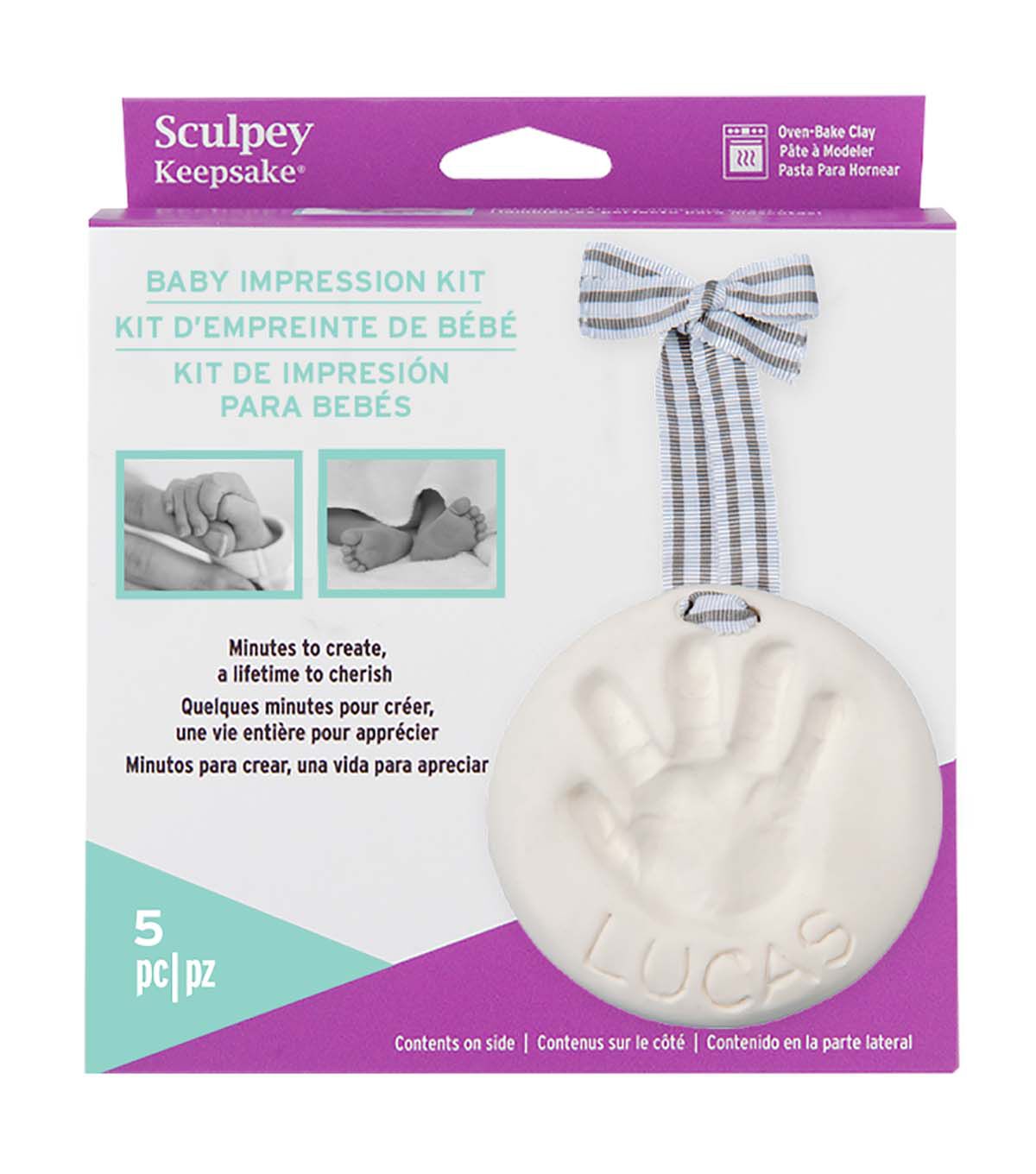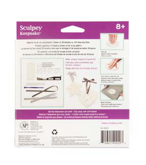 Create memories in a matter of minutes; cherish them for a lifetime. Perfect for baby hands and feet. This package creates 3 ounces oven-back clay; roller; ribbon; tool; ring and instructions.