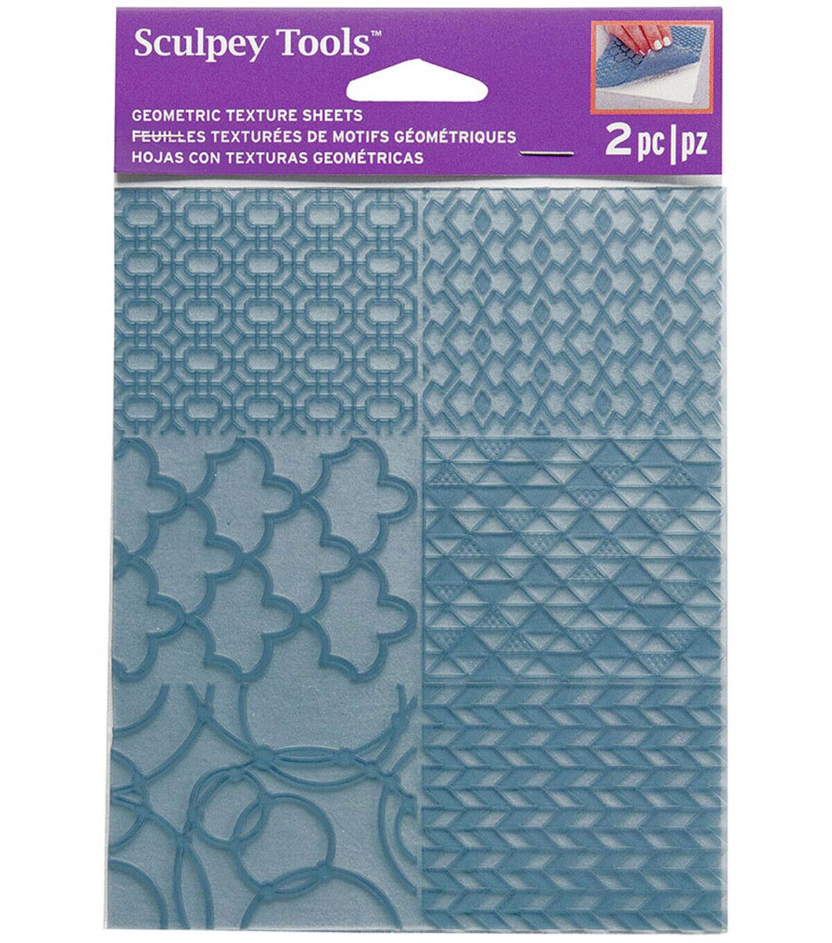 Thin, flexible texture sheets are excellent design tools for adding multidimensional decorative elements to your clay projects. Designs include angles, herringbone, circles, triangles, clouds, diamonds, and oval. This 5.5x7 inch package contains two texture sheets. Imported.