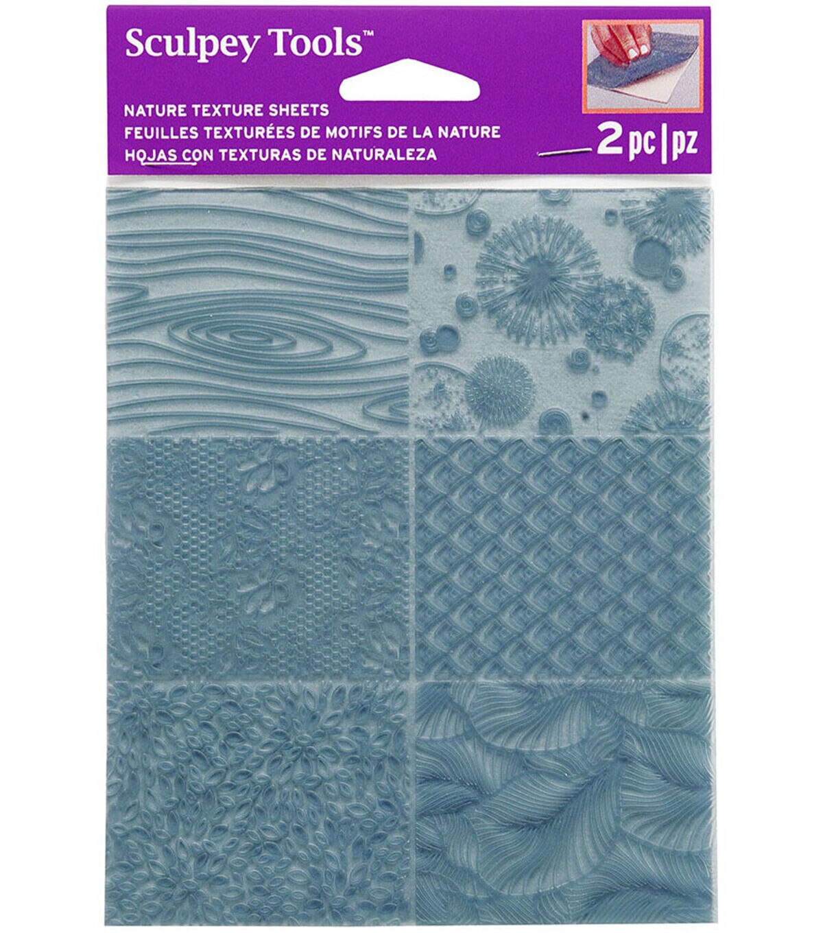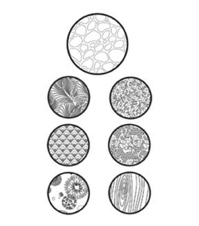 Thin, flexible texture sheets are excellent design tools for adding multidimensional decorative elements to your clay projects. Designs include angles, herringbone, circles, triangles, clouds, diamonds, and oval. This 5.5x7 inch package contains two texture sheets. Imported.