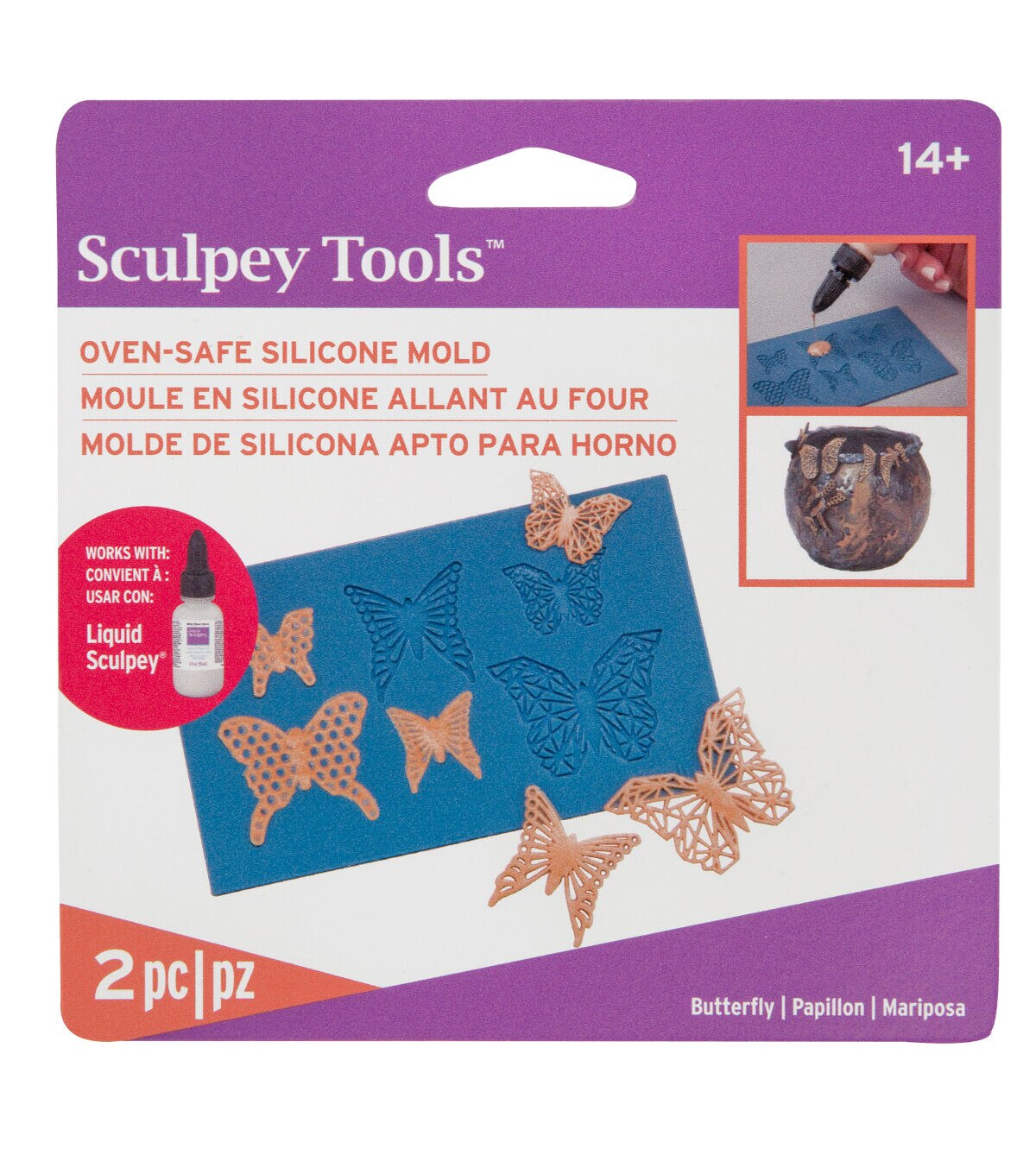 Easy-to-use and oven safe, simply fill, squeegee and bake using this Sculpey Silicone Bakeable Mold with Squeegee-Geometric Butterflies. It's perfect for jewelry, home decor and so much more. This pack contains one 5 x 3-inch silicone mold and one squeegee. Available in a variety of designs, each sold separately.