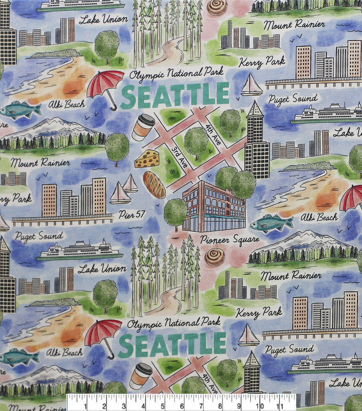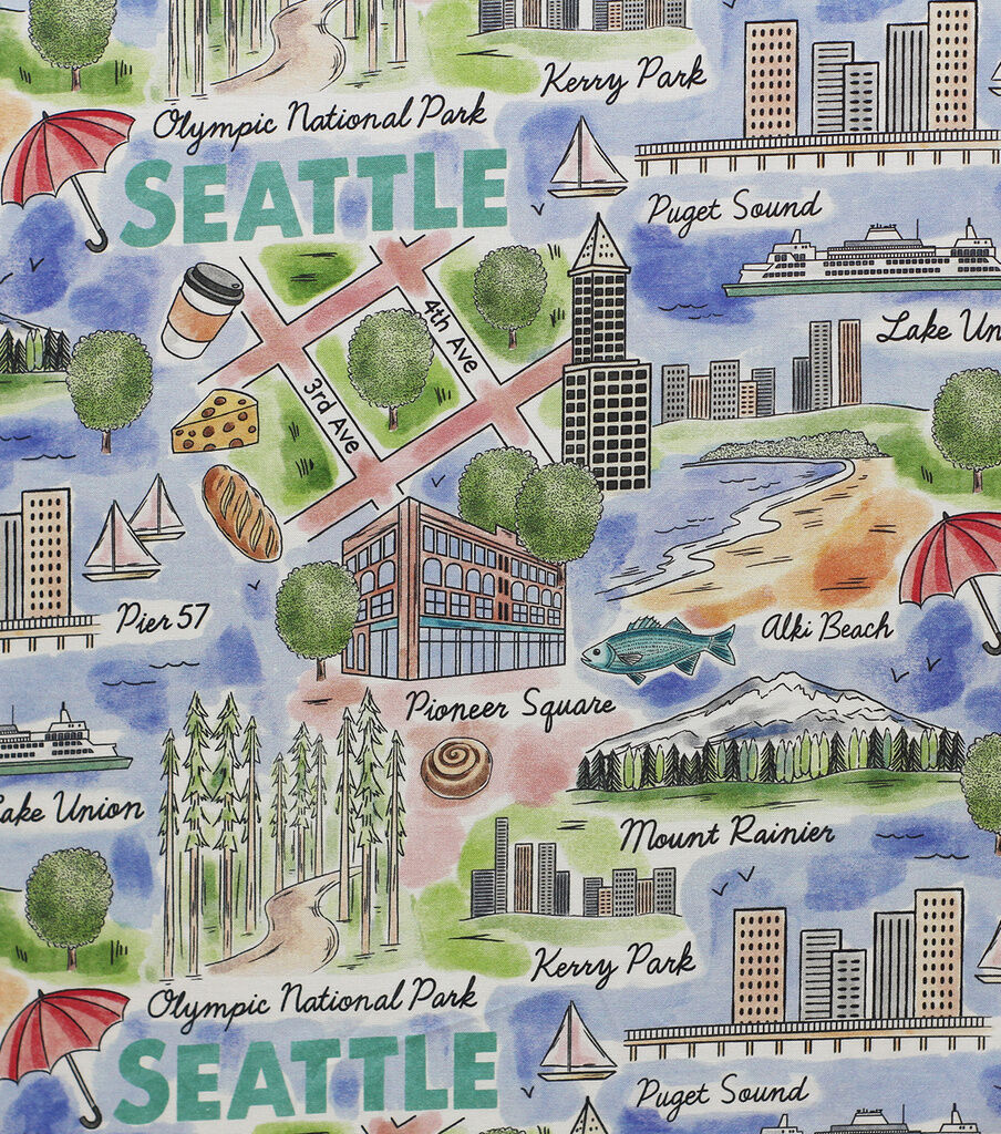 • Seattle Washington City Cotton Fabric