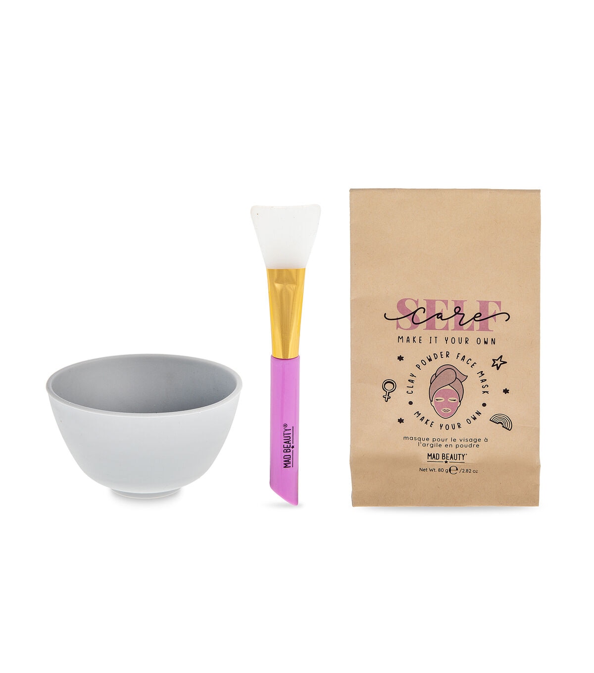 - Clay Powder in bag 80g (to be mixed with water) 1 x Silicone Bowl 1 x Silicone Brush applicator