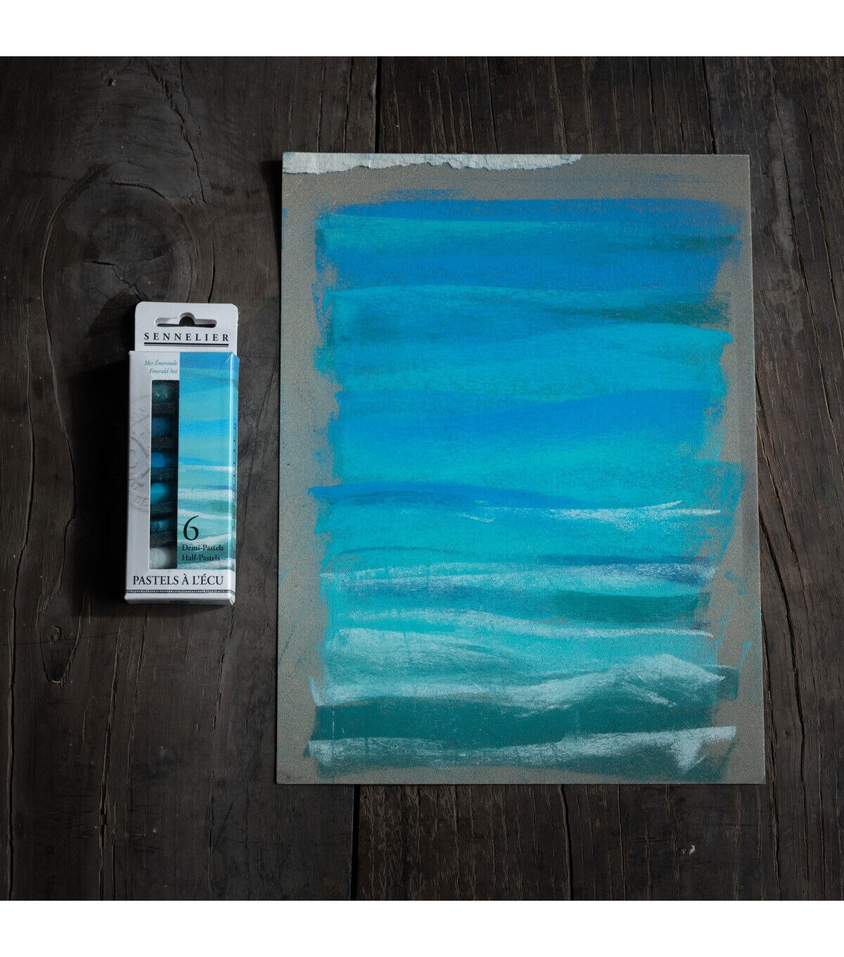 • Sennelier Extra-Soft Half-Pastel 6-Stick Set, 1-1/4" x 1/2", Emerald Sea