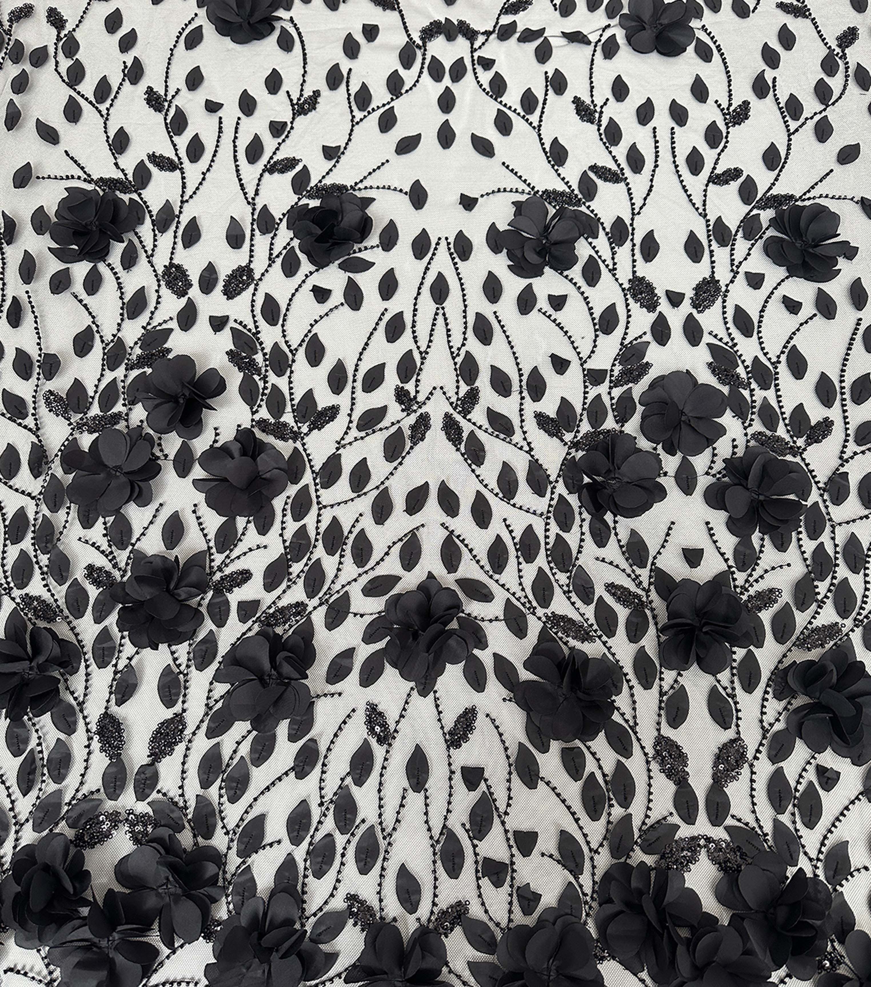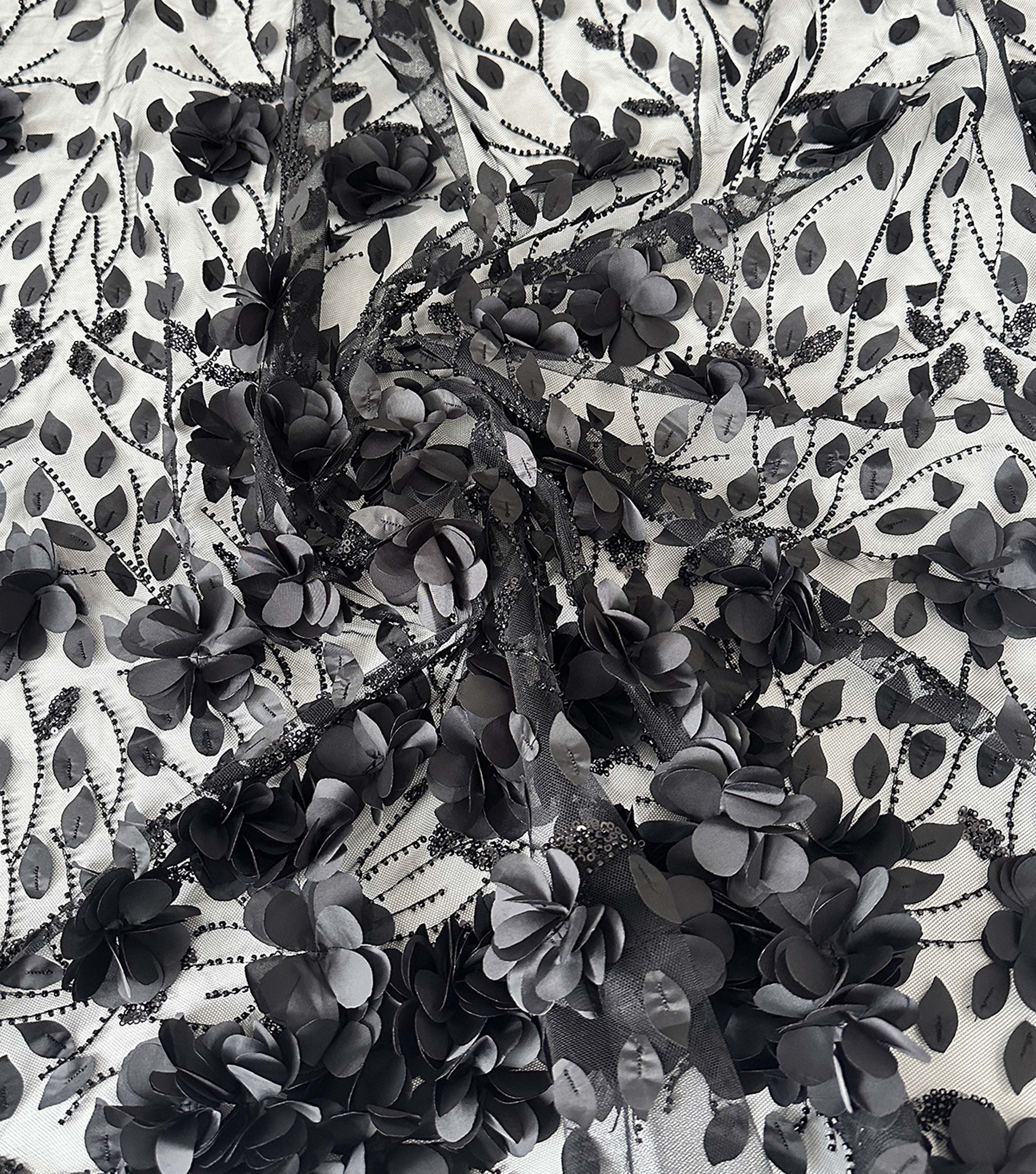 Transform your fashion game with the Sequin 3D Floral With Beads Embroidered Mesh Fabric by Casa Collection. This fabric is perfect for creating unique and eye-catching outfits that will make you stand out from the crowd. The intricate embroidery, combined with the shimmering sequins and beads, creates a stunning 3D effect that will add depth and texture to any design.