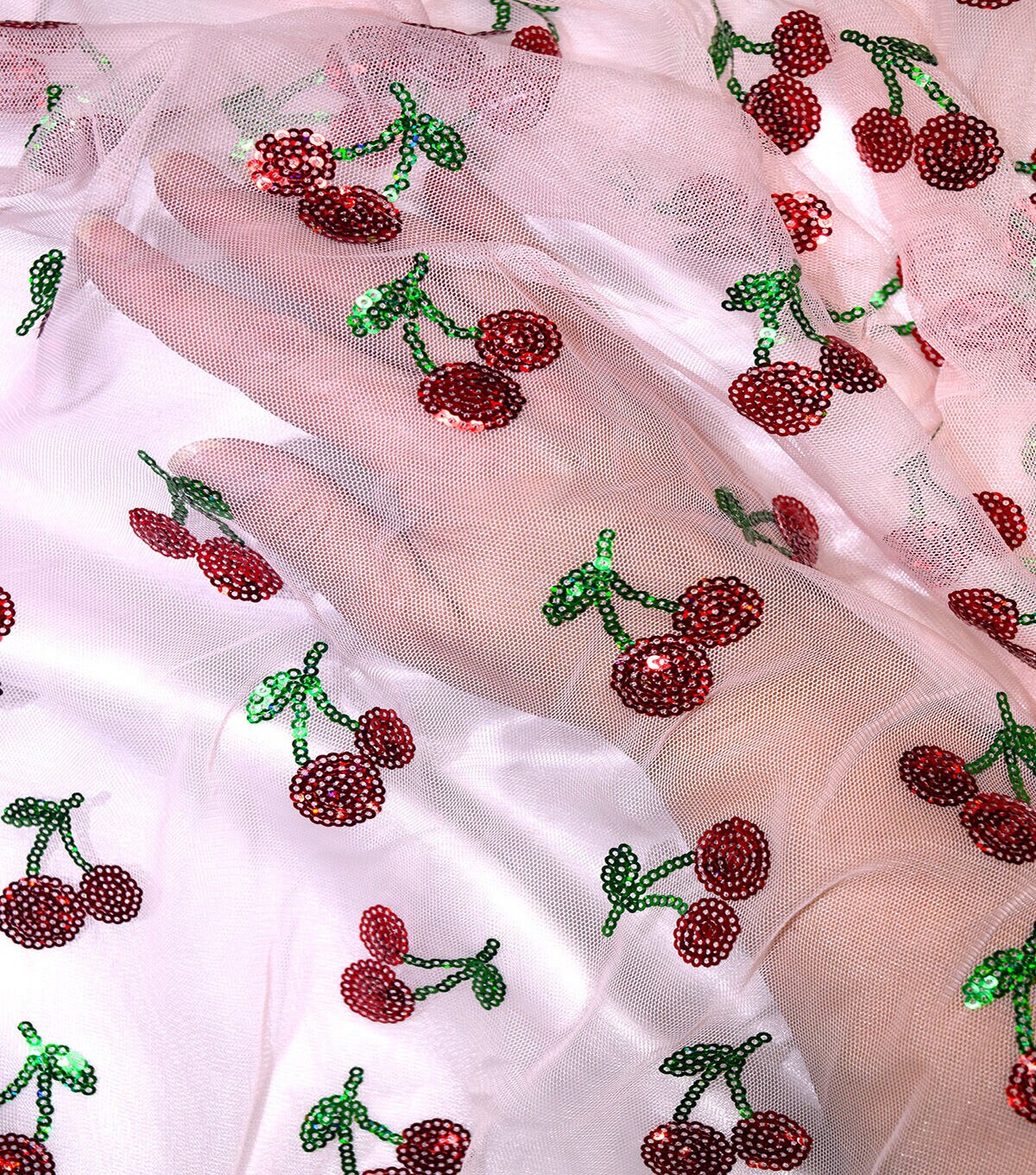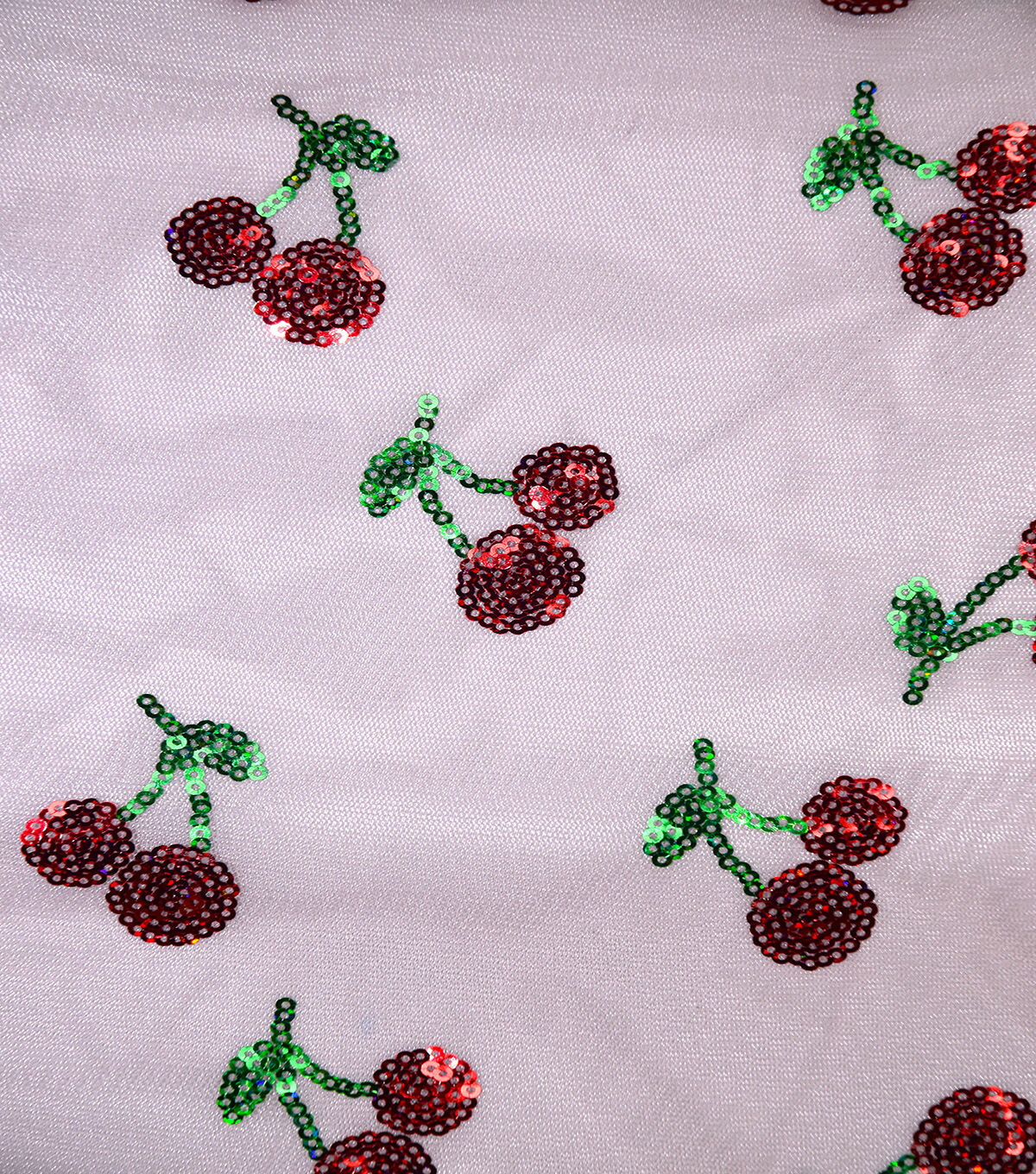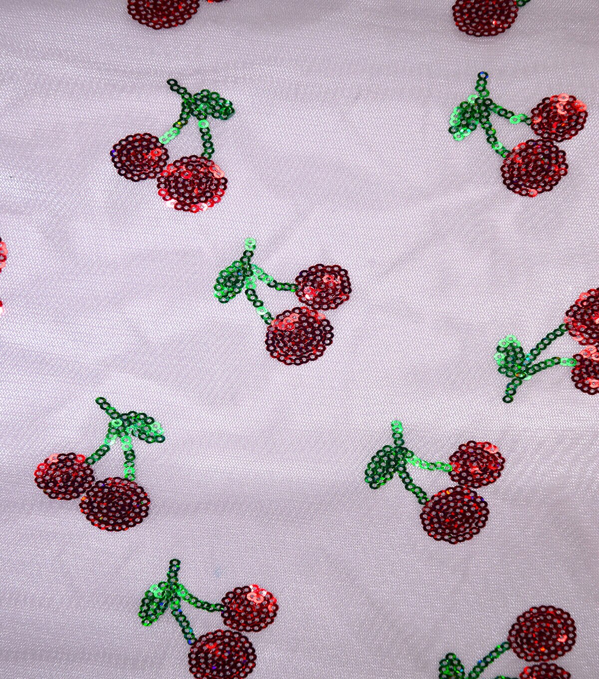 Get Festive with Sequin Red Cherries Mesh Fabric