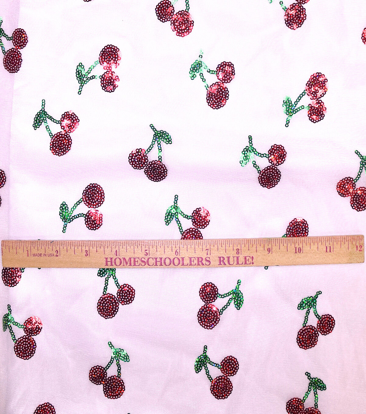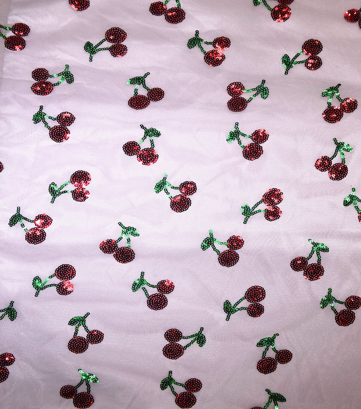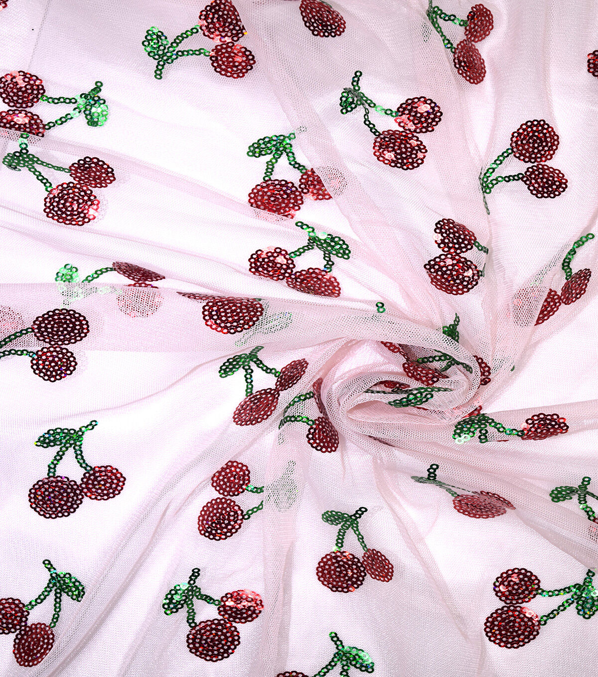 Get Festive with Sequin Red Cherries Mesh Fabric