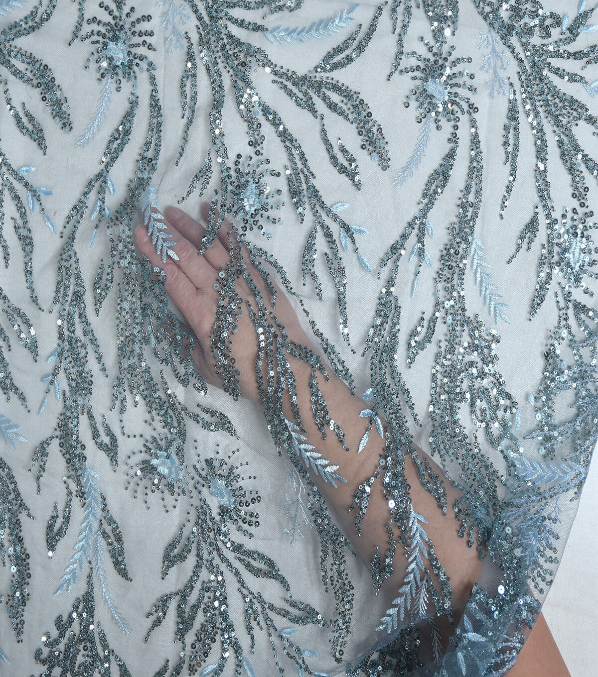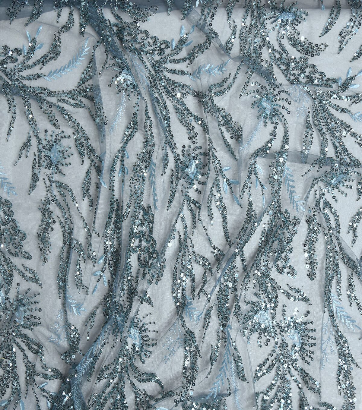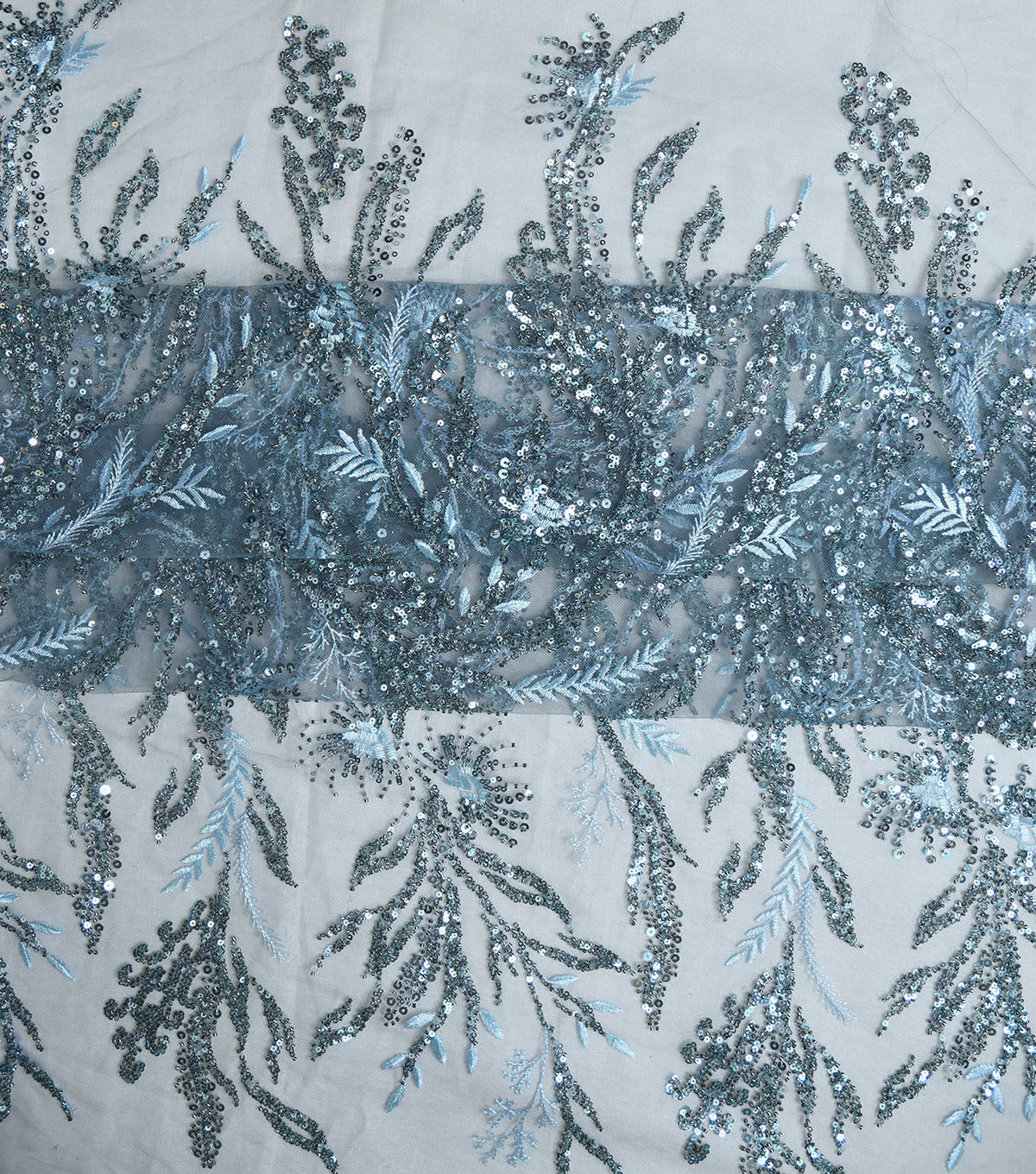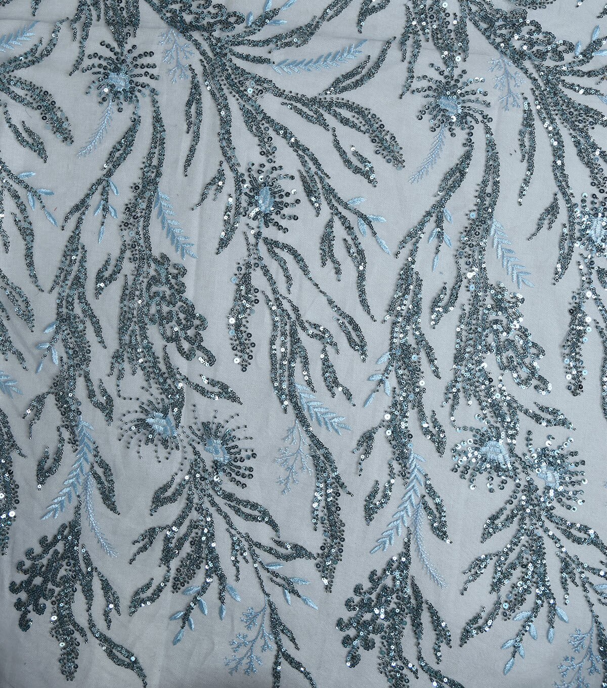• Sequin Vines On Mesh Blue Fabric