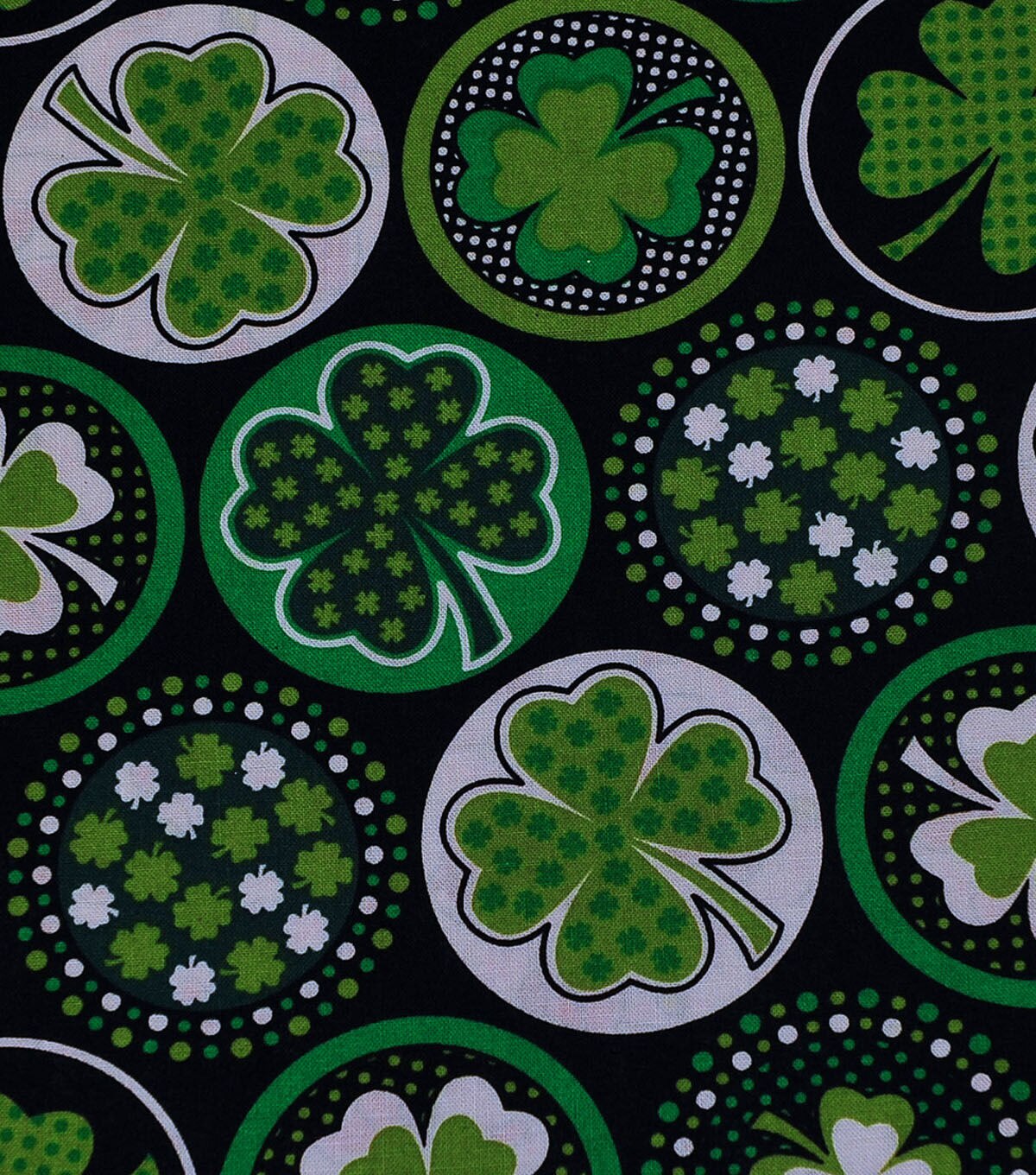 Shamrocks with Dots Black St. Patrick's Day Cotton Fabric