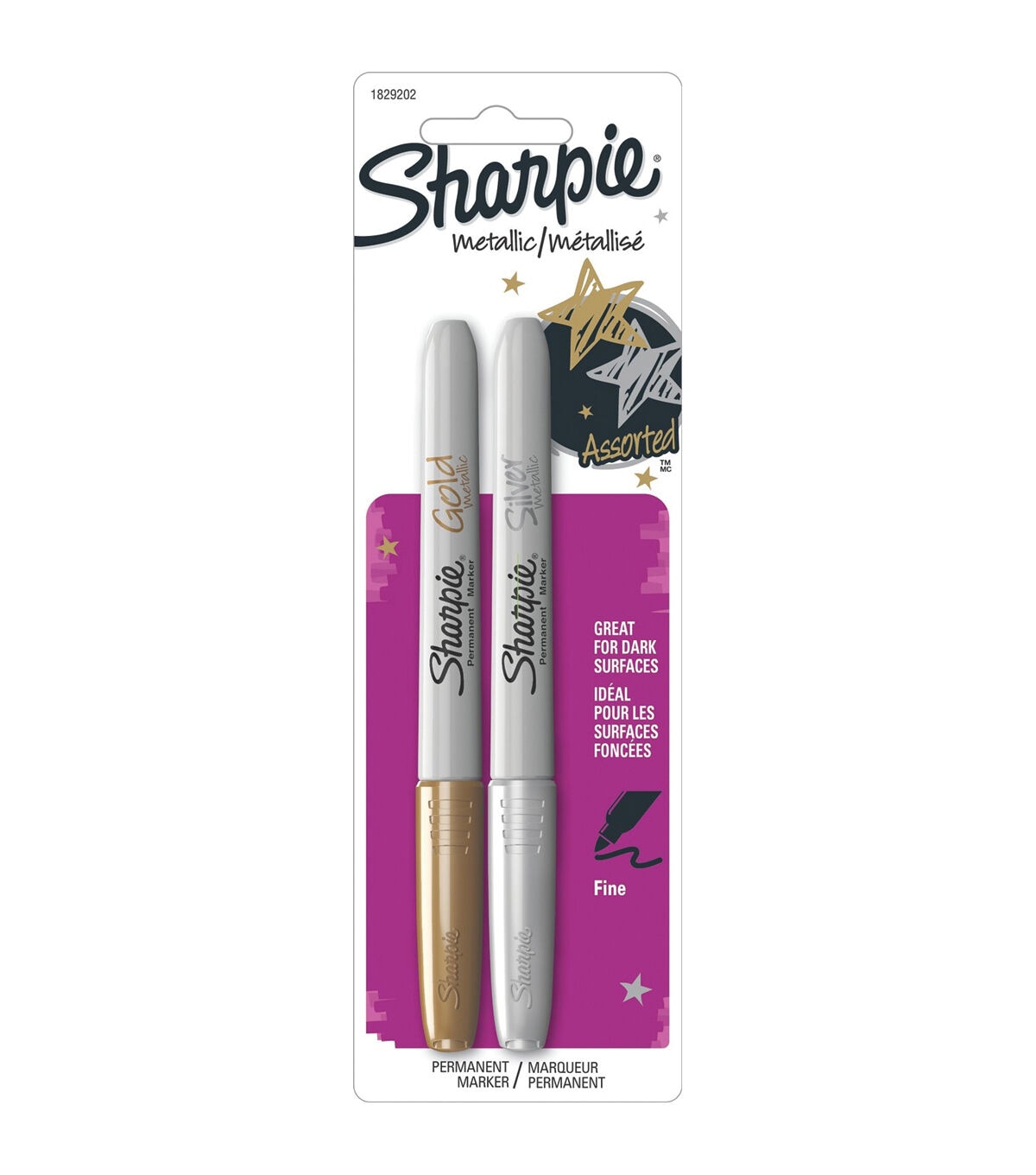 SANFORD-Sharpie: Metallic Markers. The reliability and dependability of a traditional Sharpie marker is now available in opaque metallic shades! The brightly colored ink is quick-drying, permanent, and both fade- and water-resistant making them great for a variety of coloring and crafting purposes. This package contains two Fine-tip markers (one each of Bronze Metallic and Silver Metallic). Non- toxic, conforms to ASTM D4236. Made in USA.