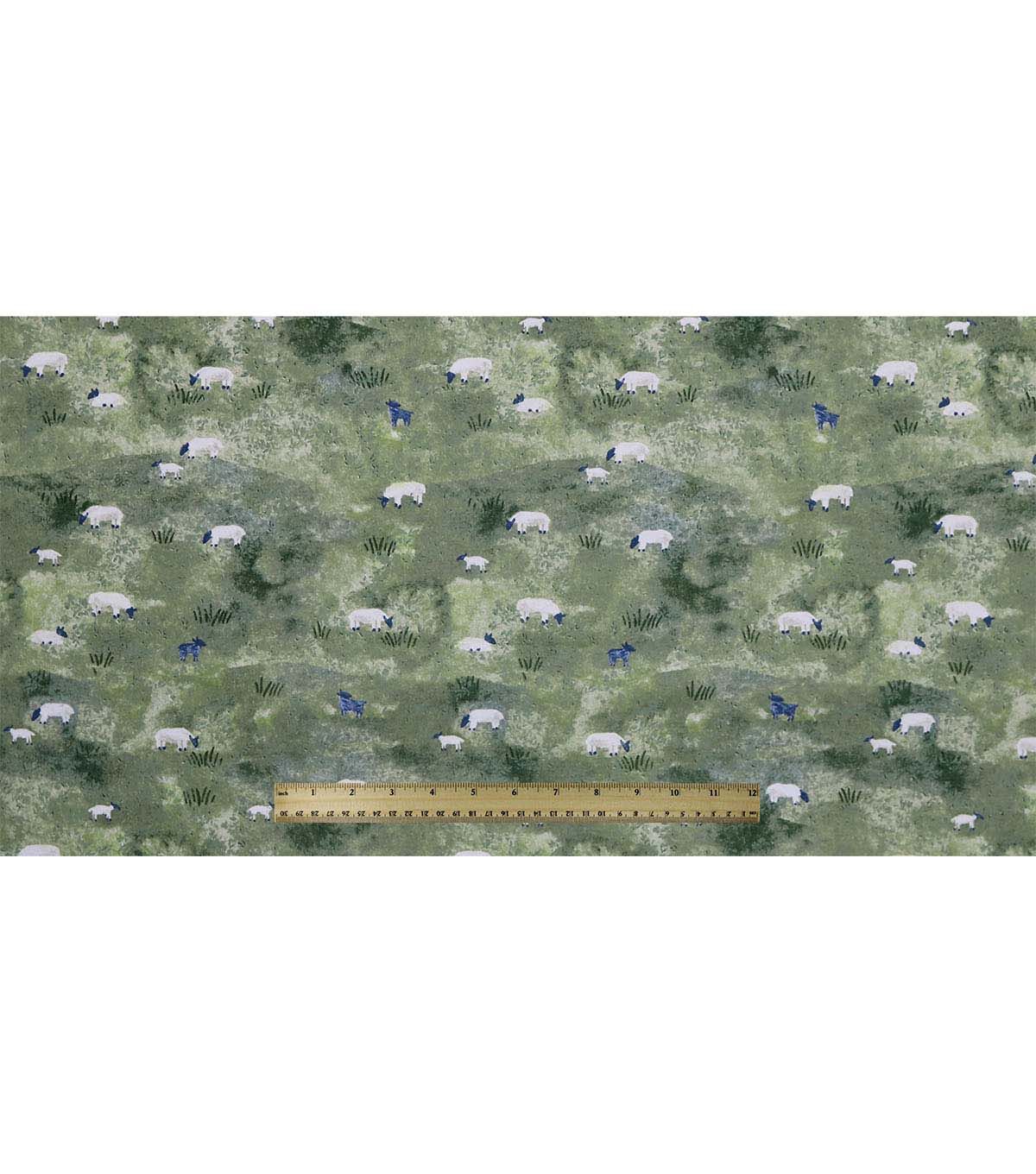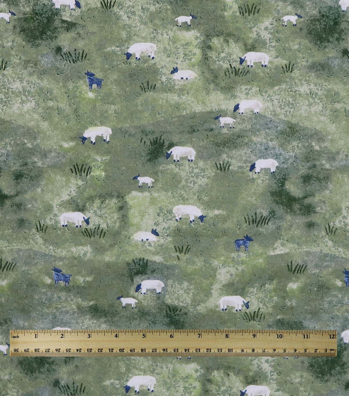 Get with Sheep on Green Super Snuggle Flannel Fabric