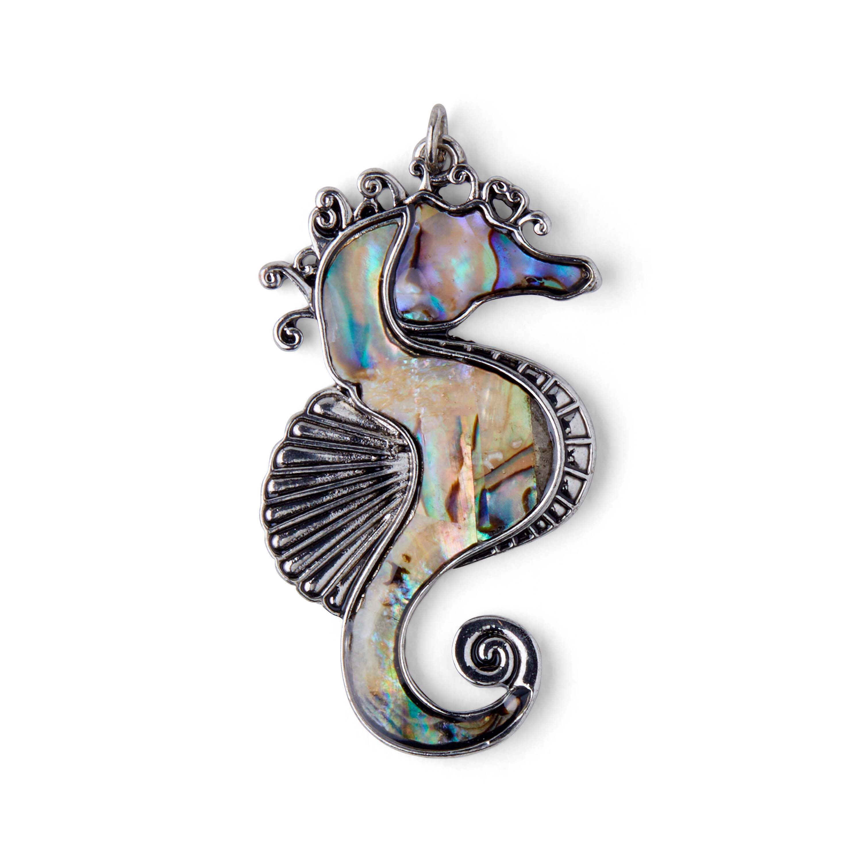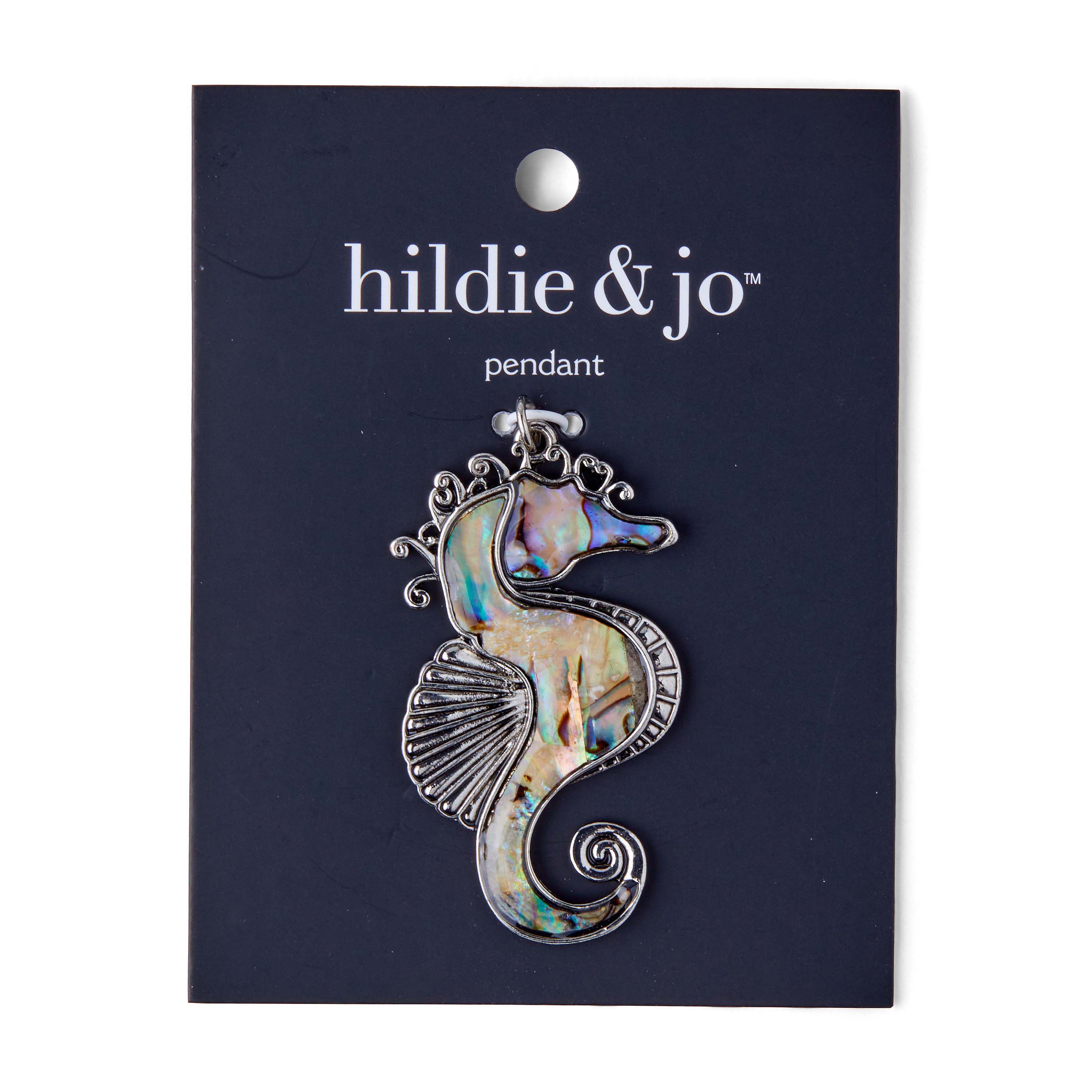 Exhibit your love for aquatic life with the lovely hildie & jo Shell & Zinc Alloy Seahorse Pendant. Artfully shaped into a seahorse with fine details, this gorgeous metal pendant will give any fashion accessory an interesting look.