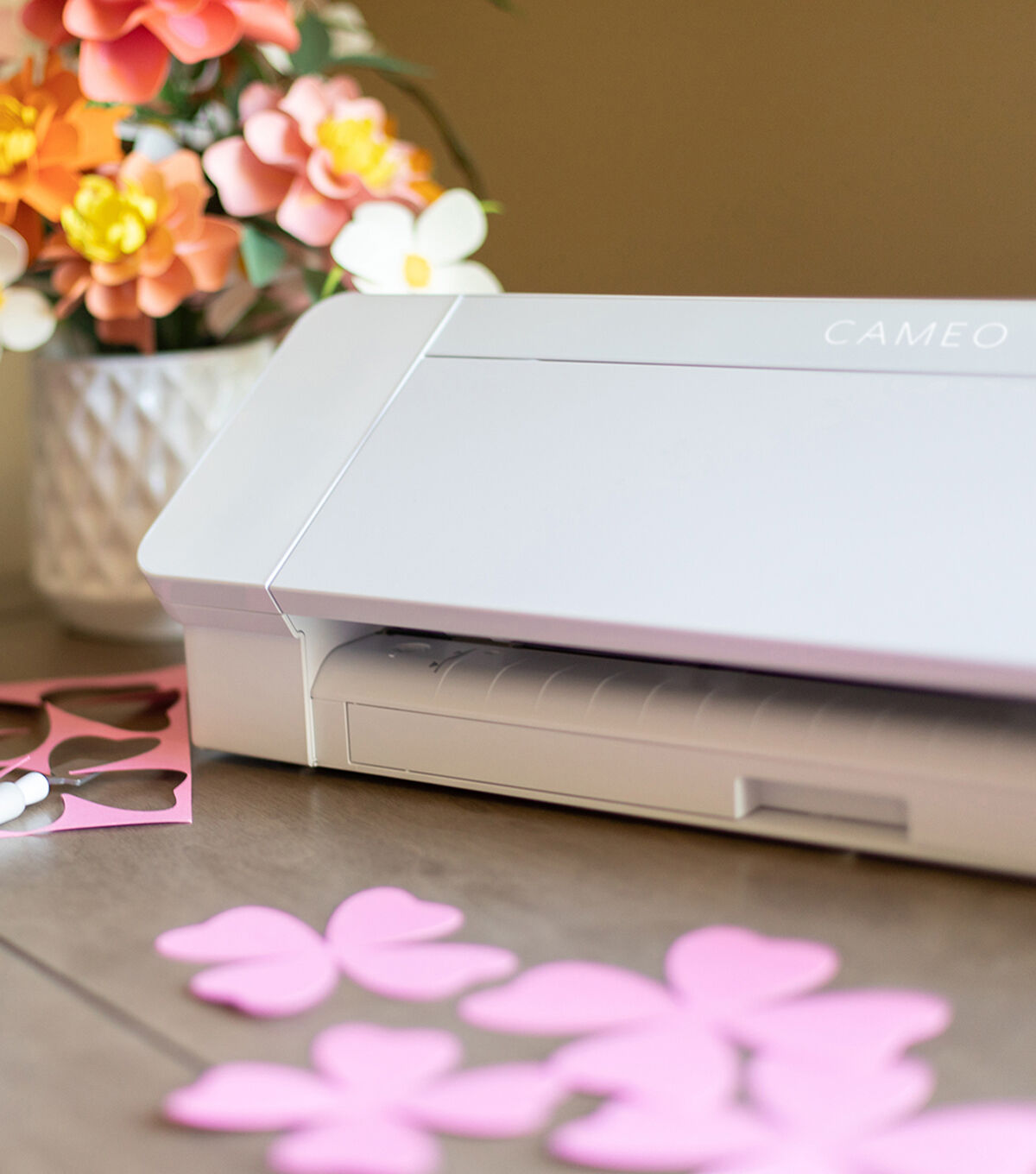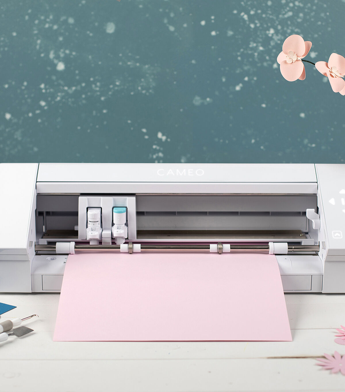 - Included: - Silhouette Cameo 4 - Power cable & USB cable - Cameo Cutting Mat (12 in. x 12 in.) - AutoBlade - Adapters for standard blade, premium blade, deep-cut blade, 2mm Kraft Blade, and Silhouette sketch pens - Silhouette Studio software (download) - 100 exclusive designs (download) - 1-month Silhouette Design Store subscription (available with machine registration)
