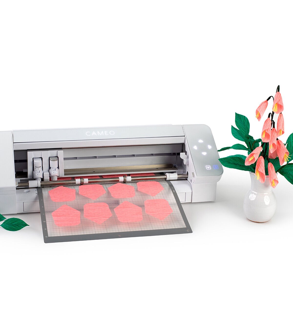 The Silhouette Cameo 4 allows you to create DIY projects with incredible precision. It uses a blade to cut over 100 materials, including paper, cardstock, vinyl, and fabric up to 12 inches wide. The Cameo has the ability to register and cut printed materials and is PixScan compatible. The Cameo 4 is compatible with the AutoBlade, features a dual-carriage, and includes Bluetooth technology.