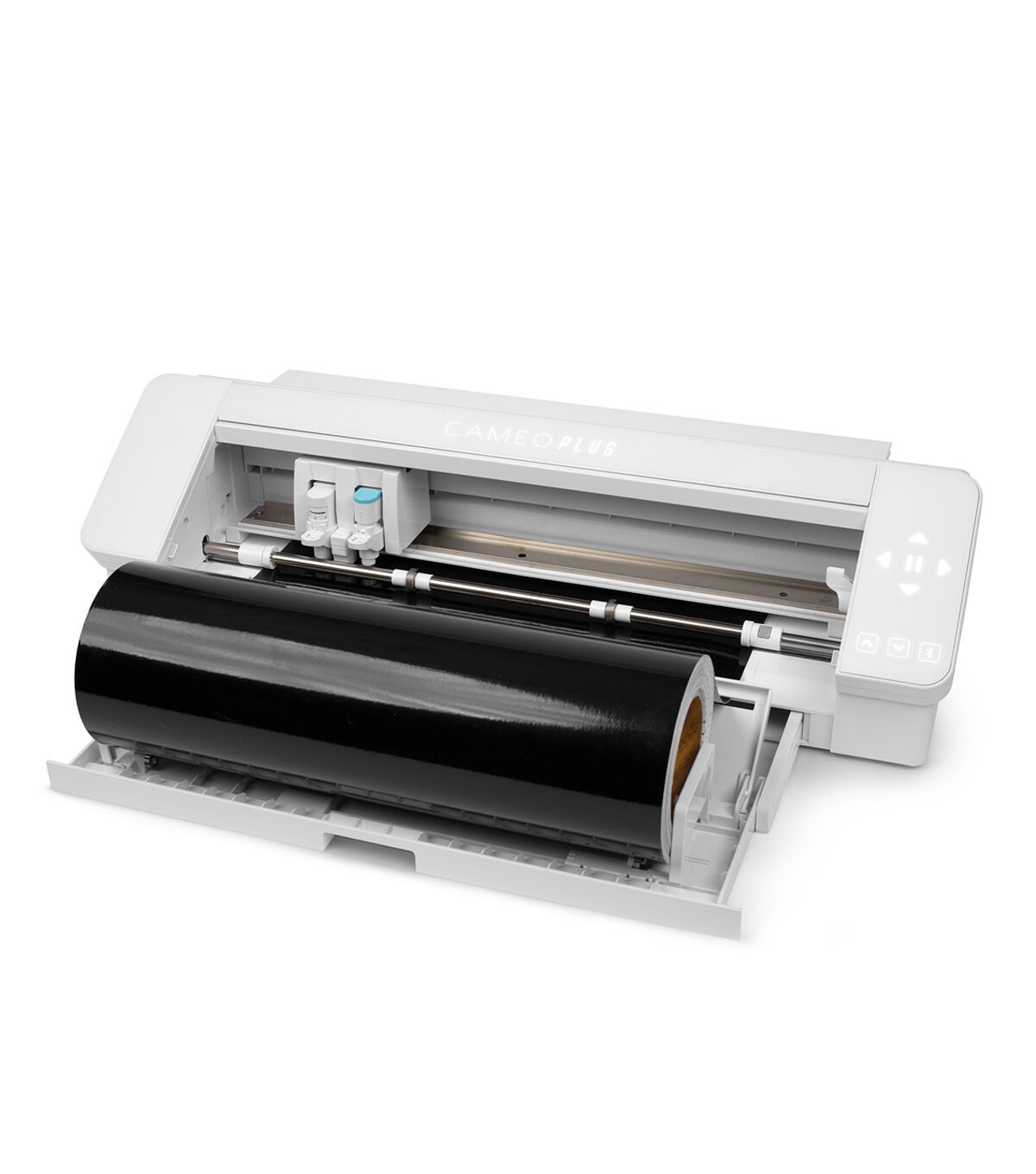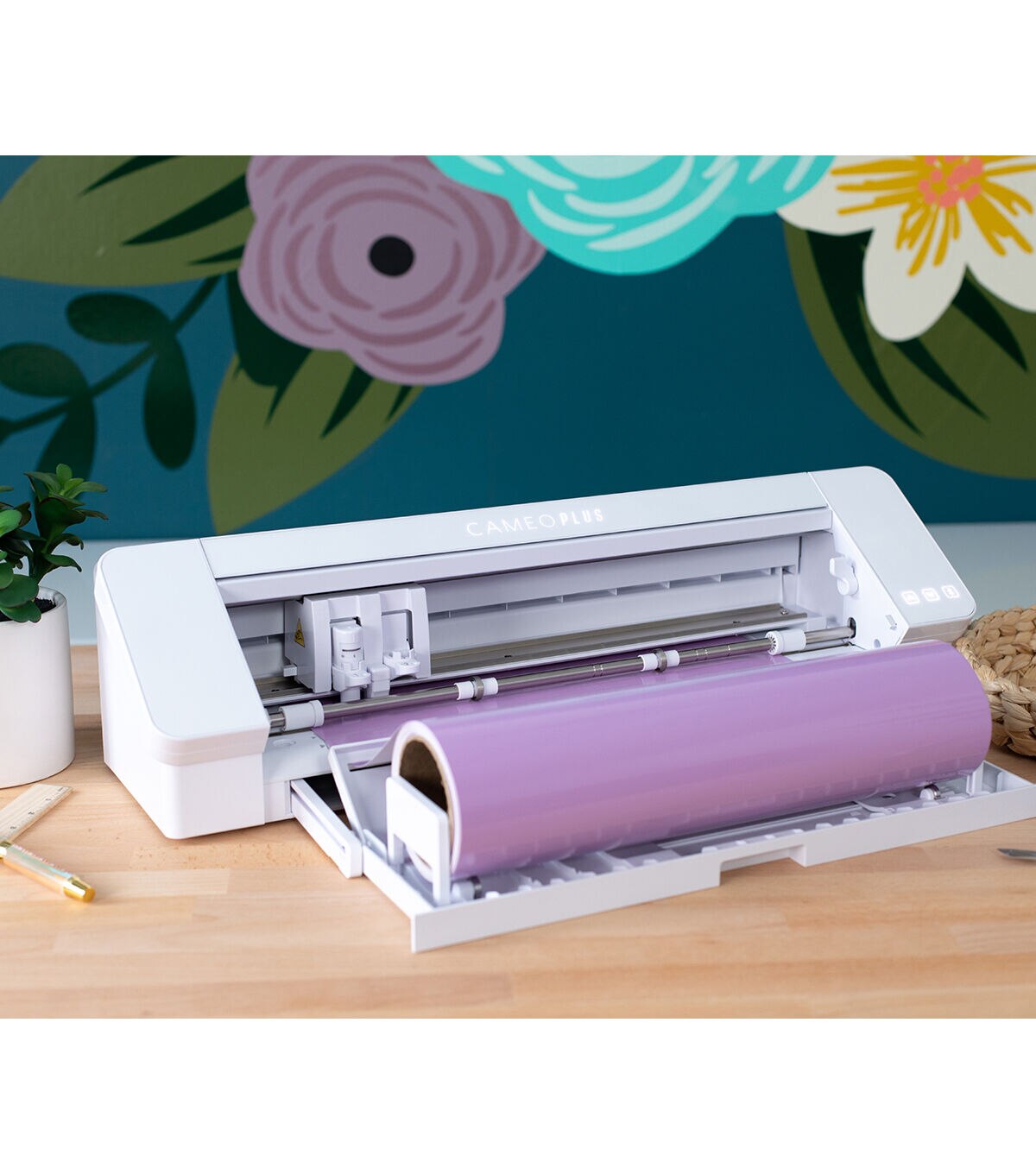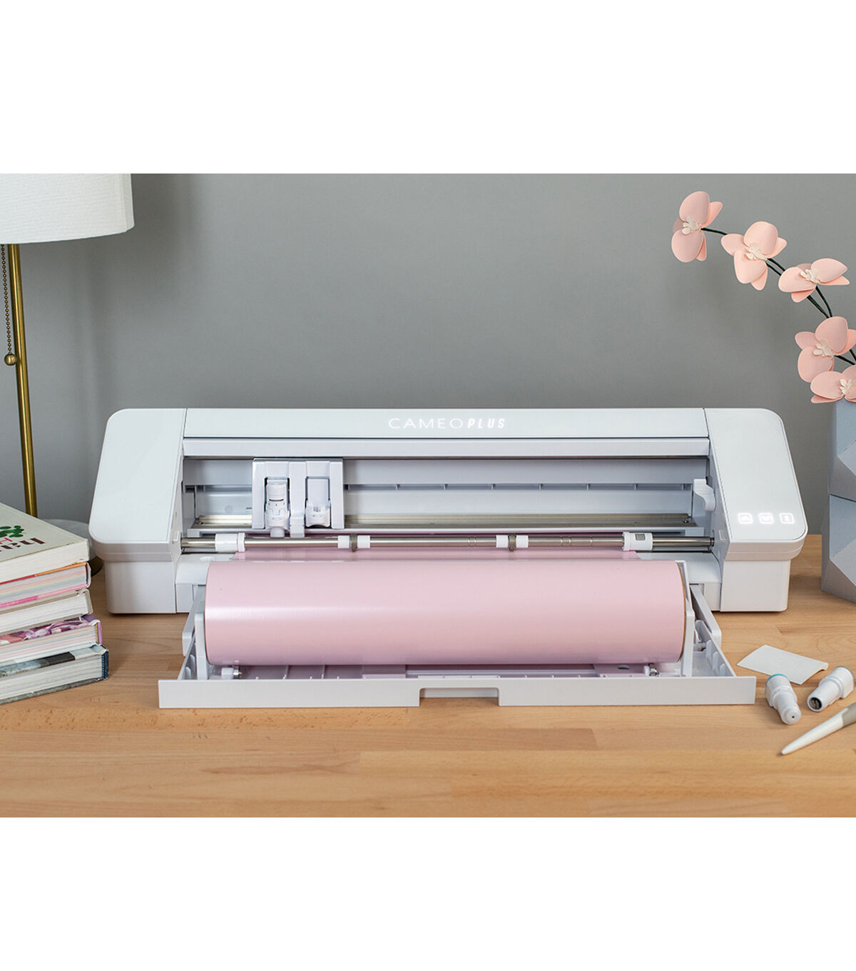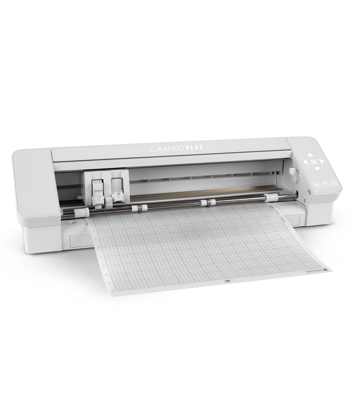 The Silhouette Cameo Plus allows you to create DIY projects with incredible precision with an increased cutting width of 15 inches. It uses a blade to cut over 100 materials, including paper, cardstock, vinyl, and fabric. The Cameo Plus has the ability to register and cut printed materials and is PixScan compatible. The Cameo Plus is compatible with the AutoBlade, features a dual-carriage, and includes Bluetooth technology.