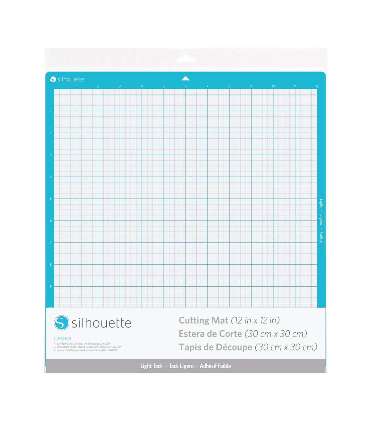 The Cameo Light Tack Cutting Mat is intended for use with the Silhouette Cameo to hold more delicate materials in place when sending jobs to the Silhouette machine. The mat has a light adhesive level to hold thinner materials, such as copy paper. The mat has a printed grid which coincides with a virtual on-screen mat in the SIlhouette Studio software for greater ease of use.